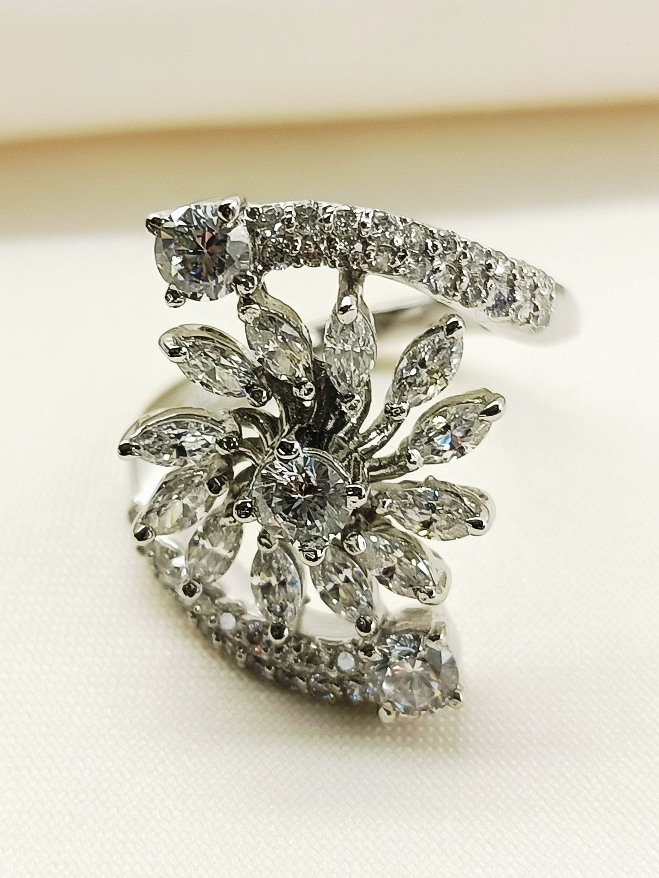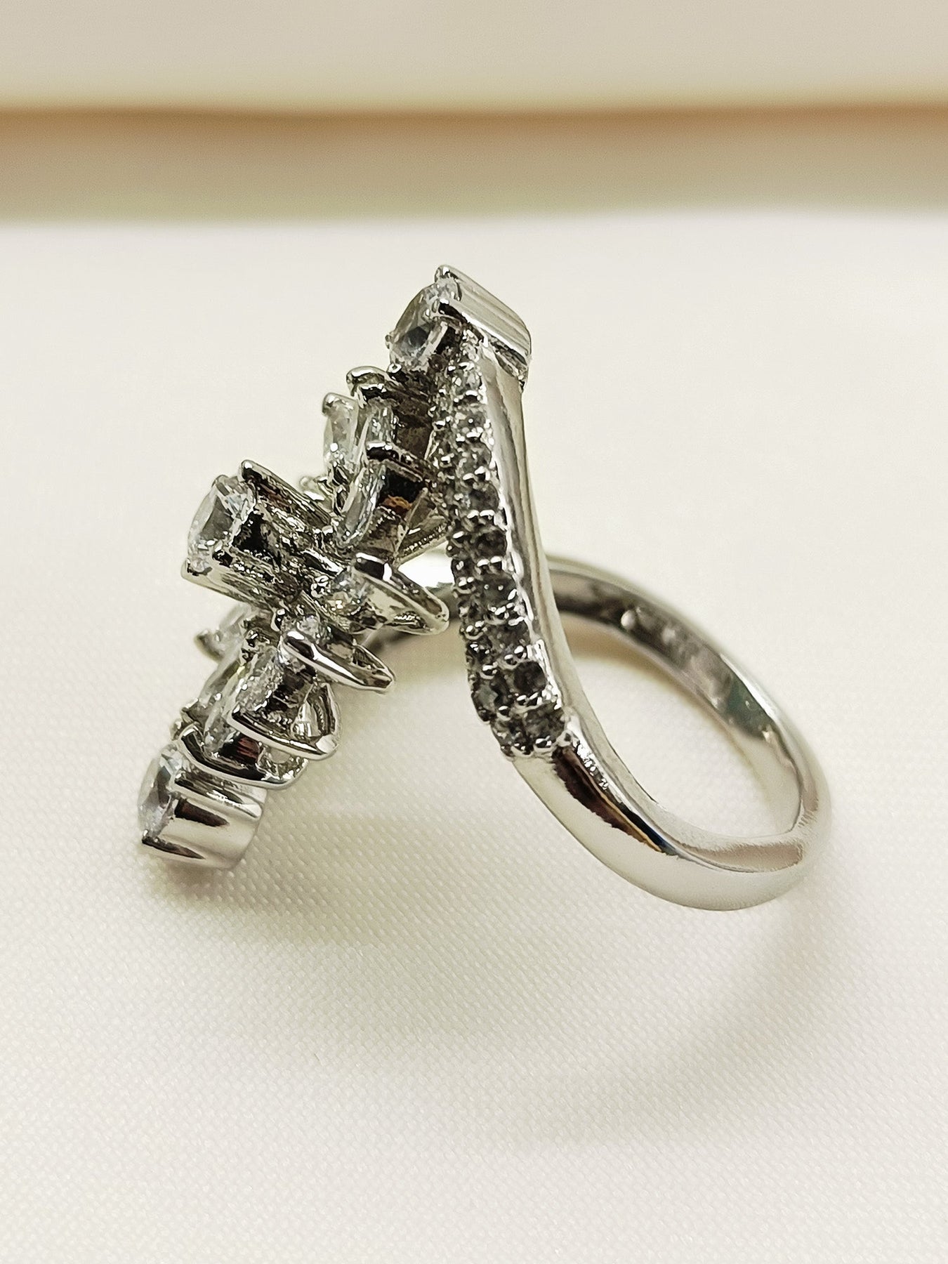 The Finger Ring Is Crafted From 92.5% Pure Silver With A Durable Silver-plated Brass Base, Offering Both Elegance And Resilience. Featuring Meticulously Set American Diamonds, This Ring Delivers A Radiant Sparkle With Refined Sophistication. Its Expert Design Ensures Comfort And Lasting Beauty, Making It An Ideal Choice For Enhancing Both Casual And Formal Looks.
