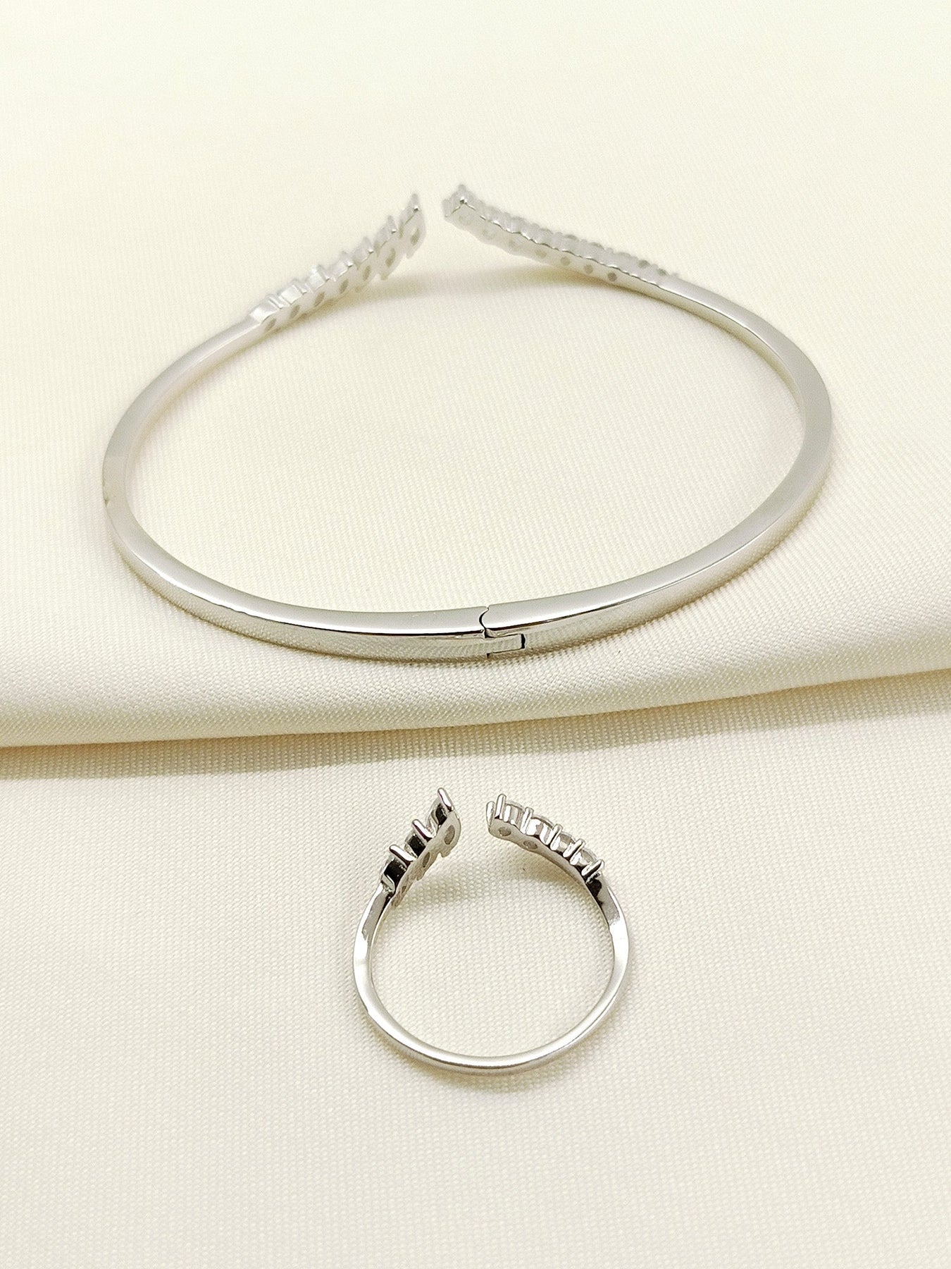 This Premium 92.5 Silver Bracelet Features Authentic Swarovski Stones Complemented By An Integrated Finger Ring Design. The Refined Silver-plated Finish Enhances The Brilliance Of The American Diamond Accents, Creating A Sophisticated Piece That Exemplifies Fine Craftsmanship. Perfect For Special Occasions Or As An Elegant Everyday Statement Piece That Captures Light With Exceptional Clarity.