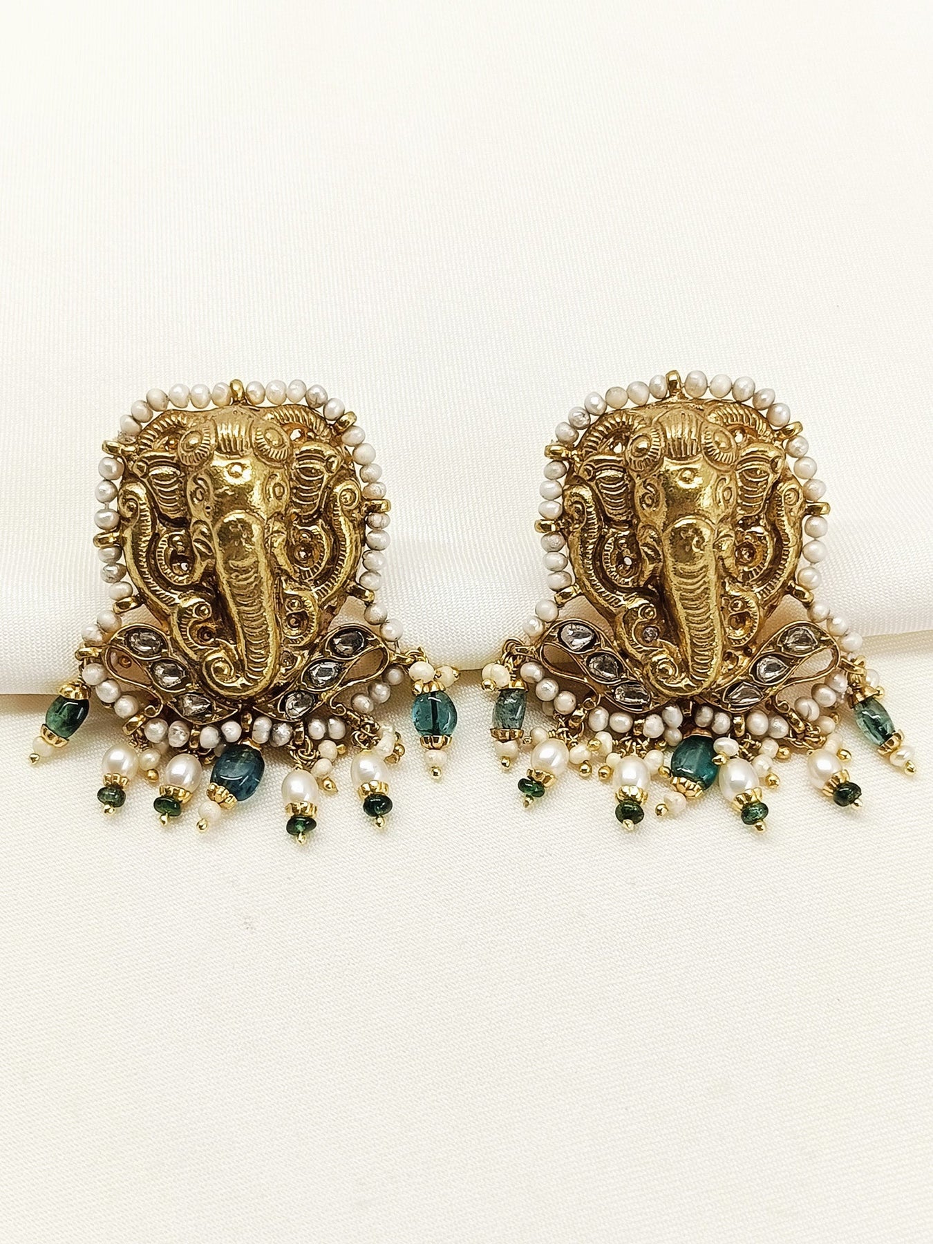 These Earrings Are Crafted On A 92.5% Real Silver Base With Exquisite Gold Plating, Embodying The Elegance Of Traditional Temple Jewellery. Adorned With Fresh Water Pearls, They Offer A Sophisticated Blend Of Classic Design And Refined Craftsmanship, Ideal For Elevating Your Ethnic Wardrobe With Lasting Beauty And Grace.