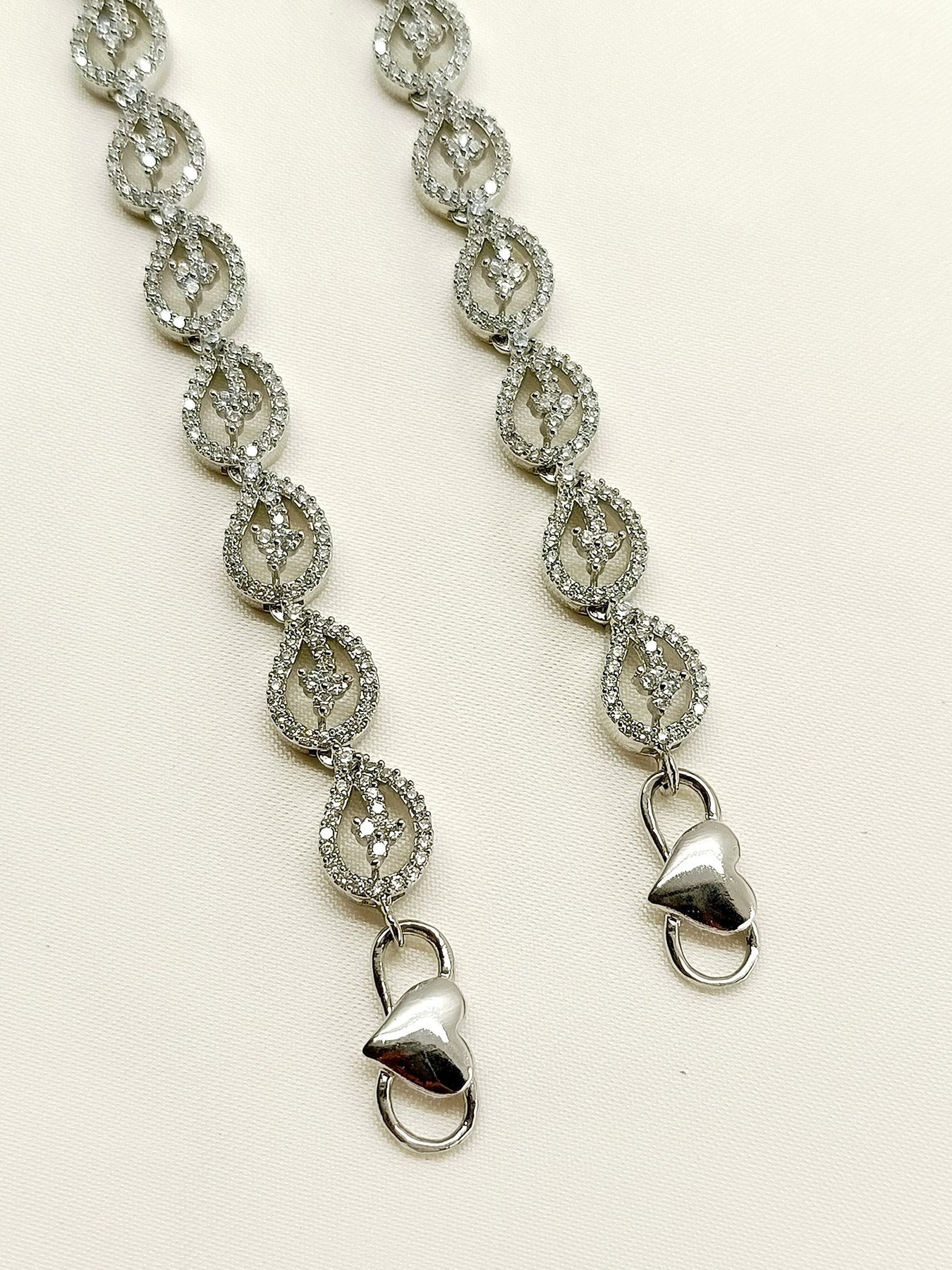 This Classic American Diamond Anklet Is Crafted With Silver Plated Brass Metal For A Timeless Look And Durability. Perfect For A Special Occasion, Elevate Any Ensemble With This Tradition inspired Piece.