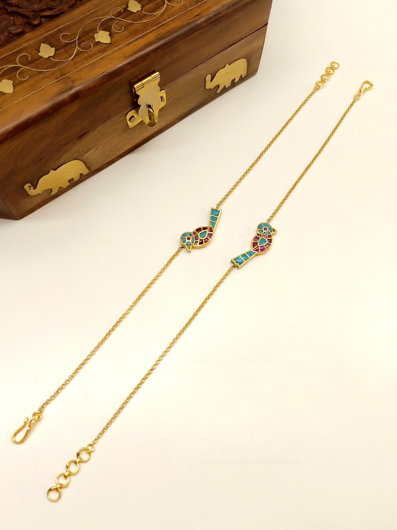 This Bird Kundan Anklet Is Crafted With Traditional Kundan Motifs Gold Plated Brass Metal. Ideal For Special Occasions, It Is Sure To Make A Statement.