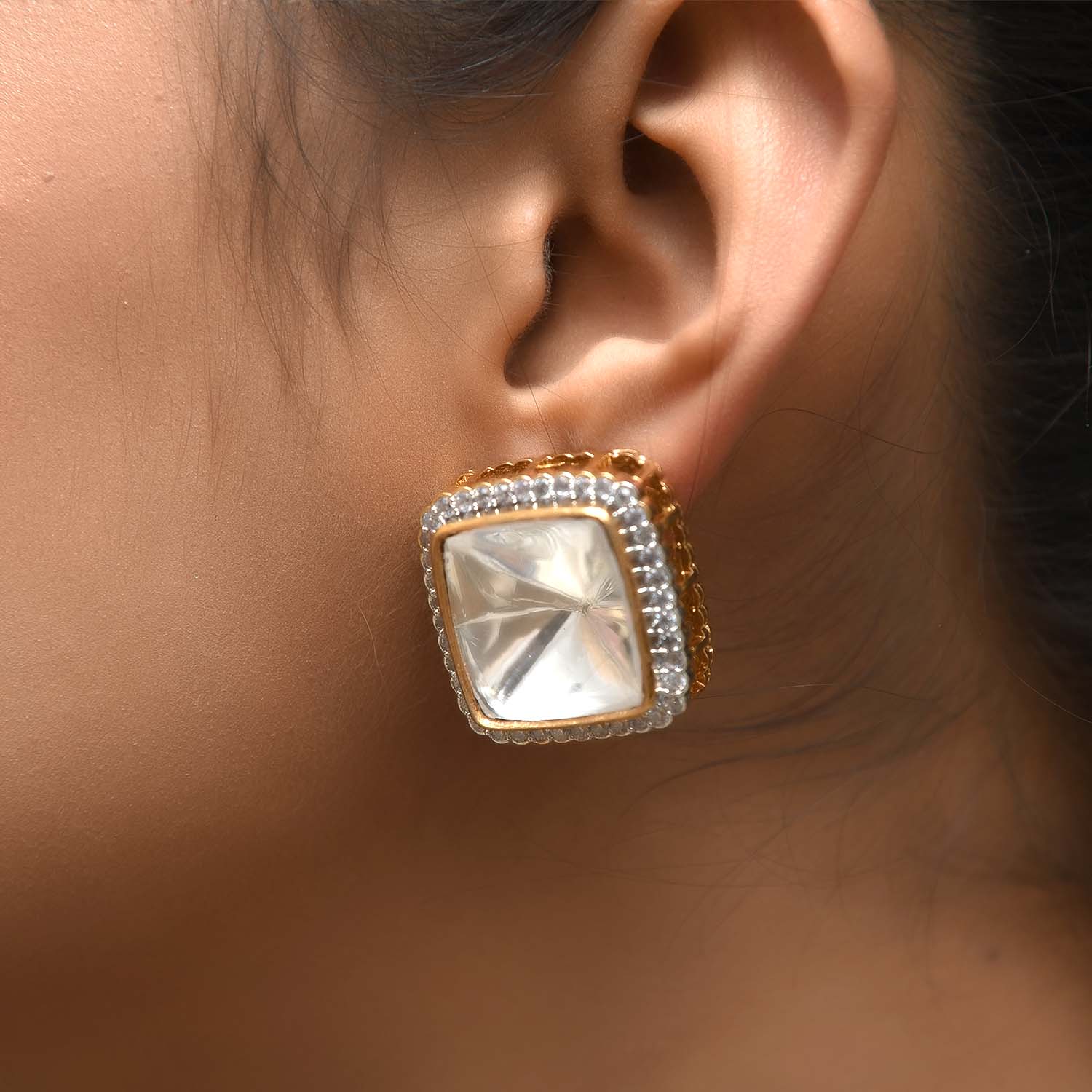 Crafted from high-quality gold-plated brass metal, these Kundan tops are perfect for those who value both style and comfort. The secure clip-on design ensures a snug fit, allowing you to wear them effortlessly from day to night.