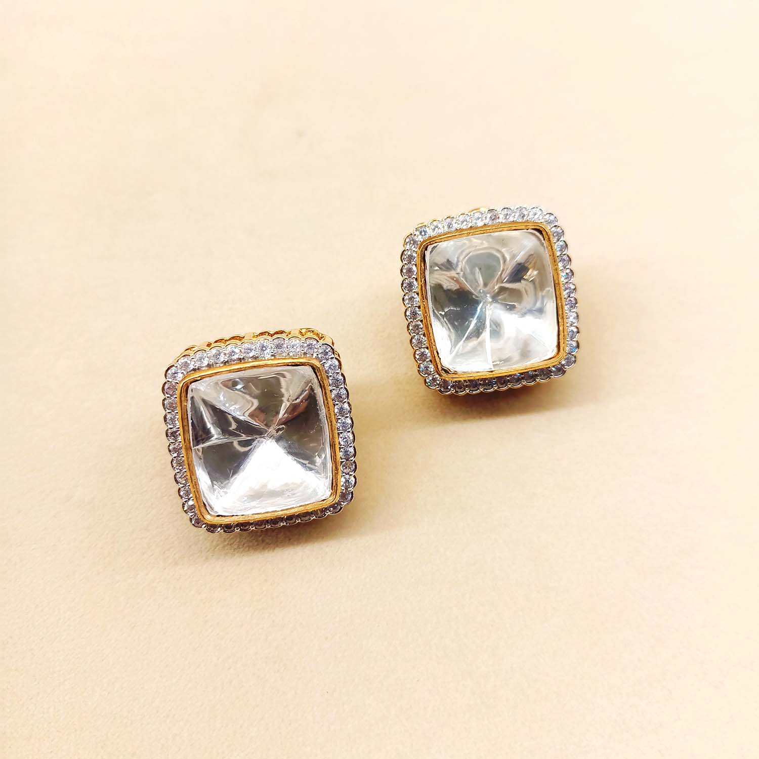 Elevate your elegance with the Jasmit Diamond Polki Stone Gold Plated Kundan Tops, a masterpiece designed to enhance your grace and confidence. These stunning earrings feature a captivating blend of large Polki stones and exquisite American diamonds, ensuring you shine brightly on any occasion.