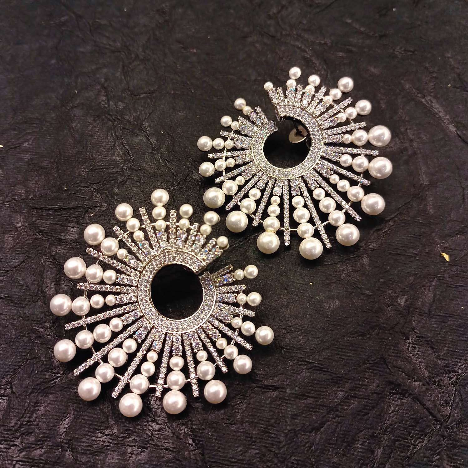 Parineeti American Diamond Silver Plated Pearl Tops - qivii