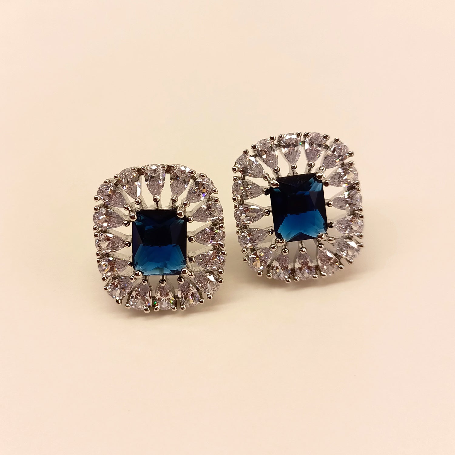 Enhance your elegance with the exquisite Rajlaxmi American Diamond Blue Sapphire Tops. These stunning stud earrings are designed to captivate and inspire, featuring a breathtaking semi-precious blue sapphire that adds a touch of aqua brilliance. Crafted with care, these tops are set in silver-plated brass, ensuring durability while maintaining a sophisticated shine.