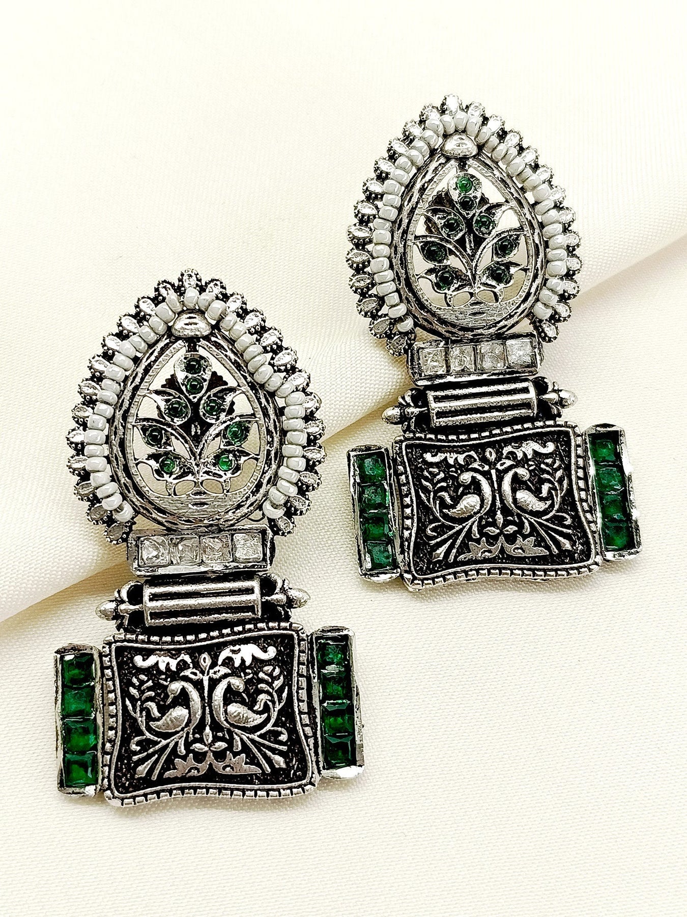 Experience The Timeless Elegance Of Our Earrings, Crafted With Traditional Techniques, These Earrings Feature Silver Plated Brass Metal, Complete With A Delicate Kundan Stone , These Earrings Are A Must-have For Any Occasion. Elevate Your Style With These Exquisite Earrings.