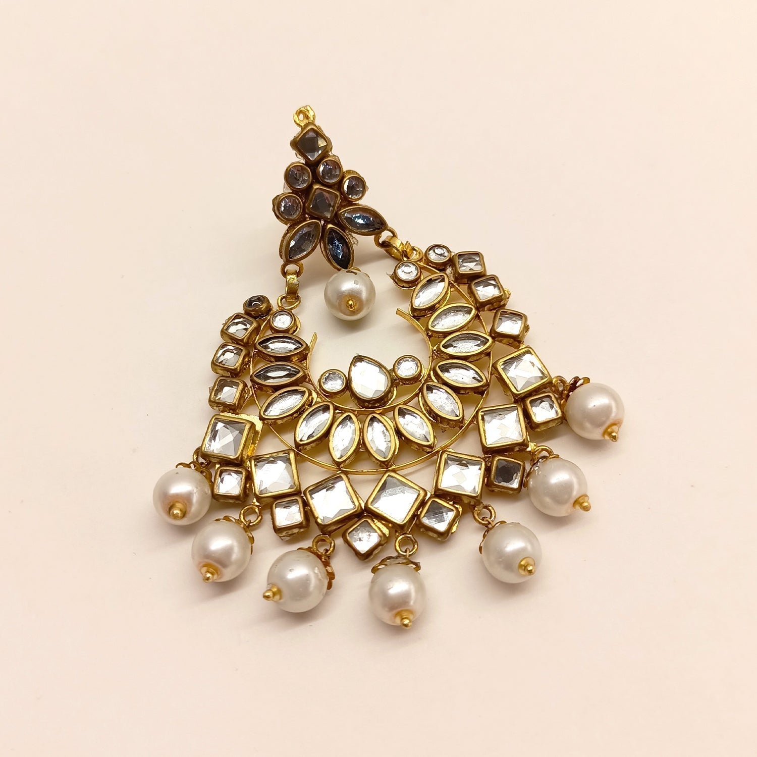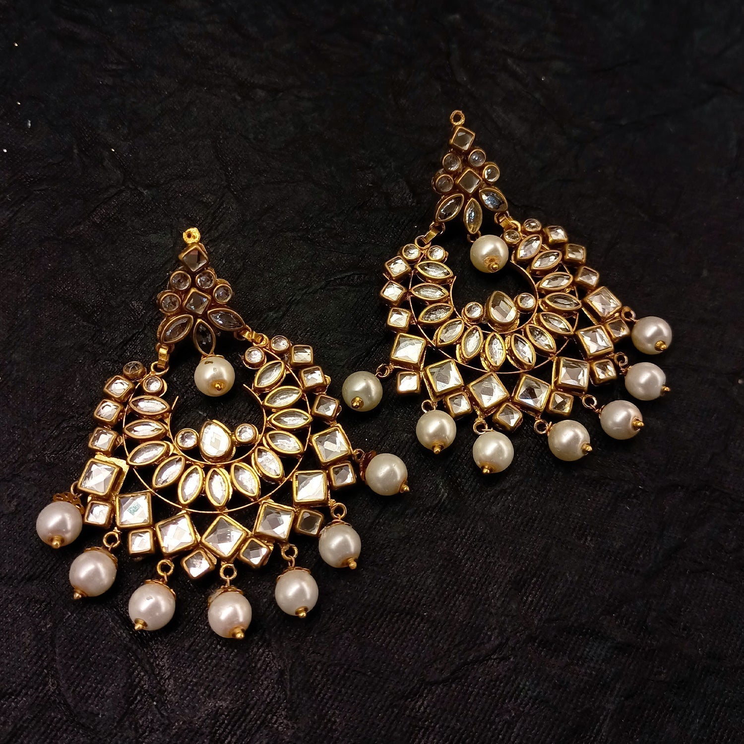 This Kundan Earrings Has Big Pearl Hangings Which Is Perfectly Matched With Pearl Choker, this Kundan Earrings Are Designed For Bridesmaids On Any Traditional Lehenga.