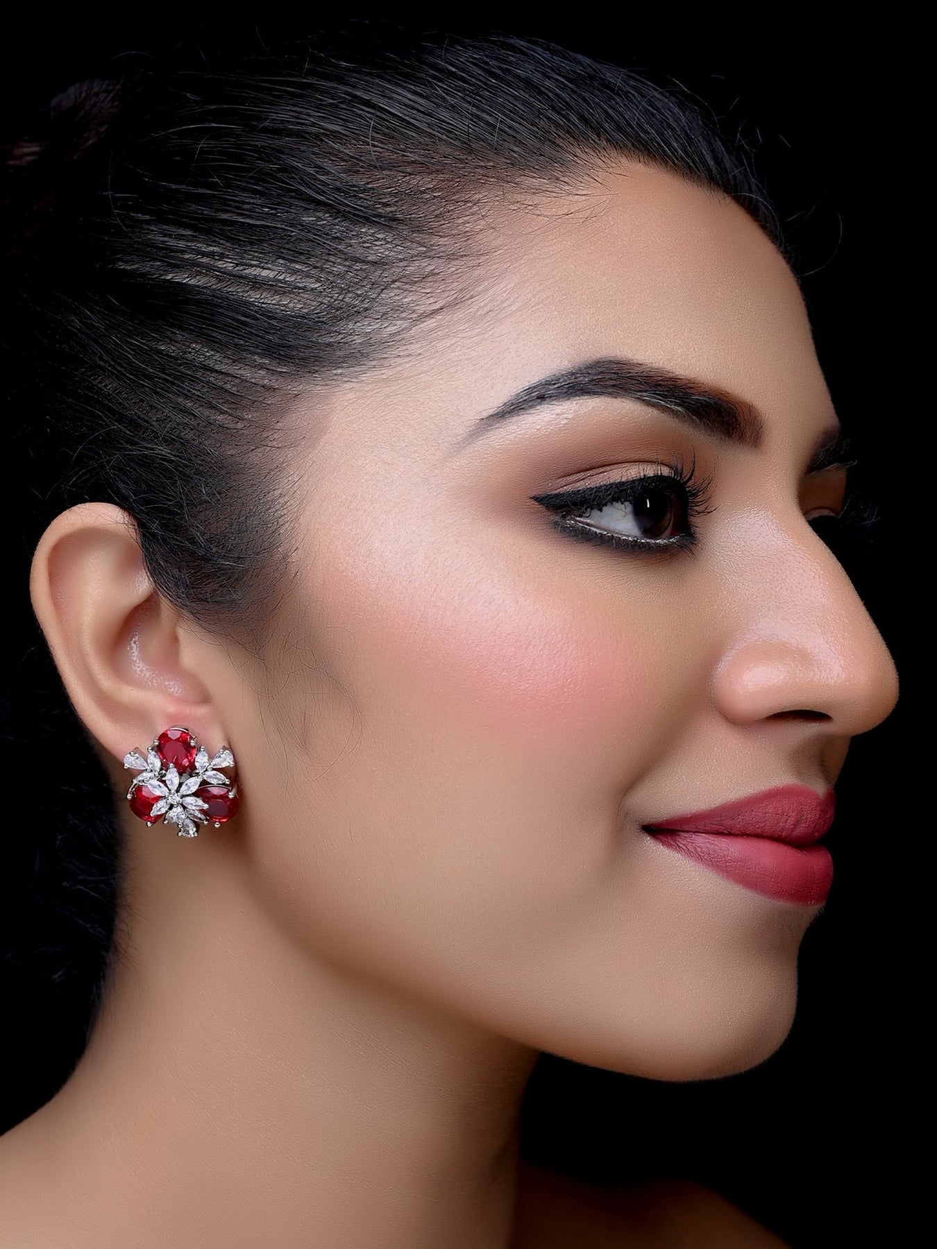 Discover the elegance of Sanchi's American Diamond Rose Pink Tops, the perfect blend of sophistication and style. Crafted with care, these studs feature enchanting semi-precious rose pink stones set in high-quality brass metal with a lustrous silver plating. They are the ultimate accessory for those seeking to elevate their everyday look with a touch of glamour.