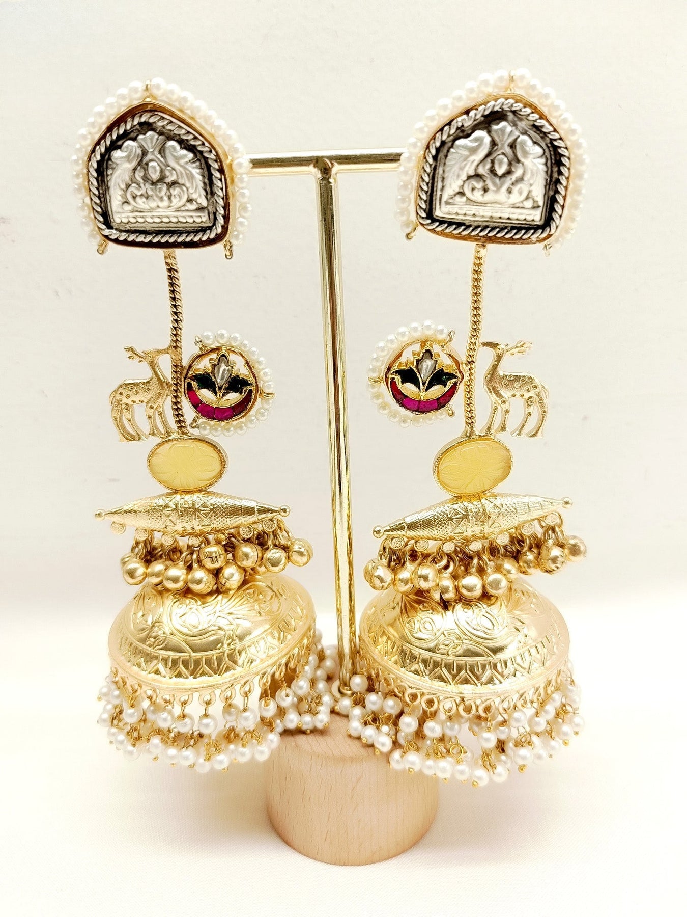 Let your style shine and feel empowered with these stunning jhumkis that are designed to elevate your look and confidence. Whether it's a celebratory event or a casual gathering, these earrings promise to enhance your ensemble with their radiant charm.