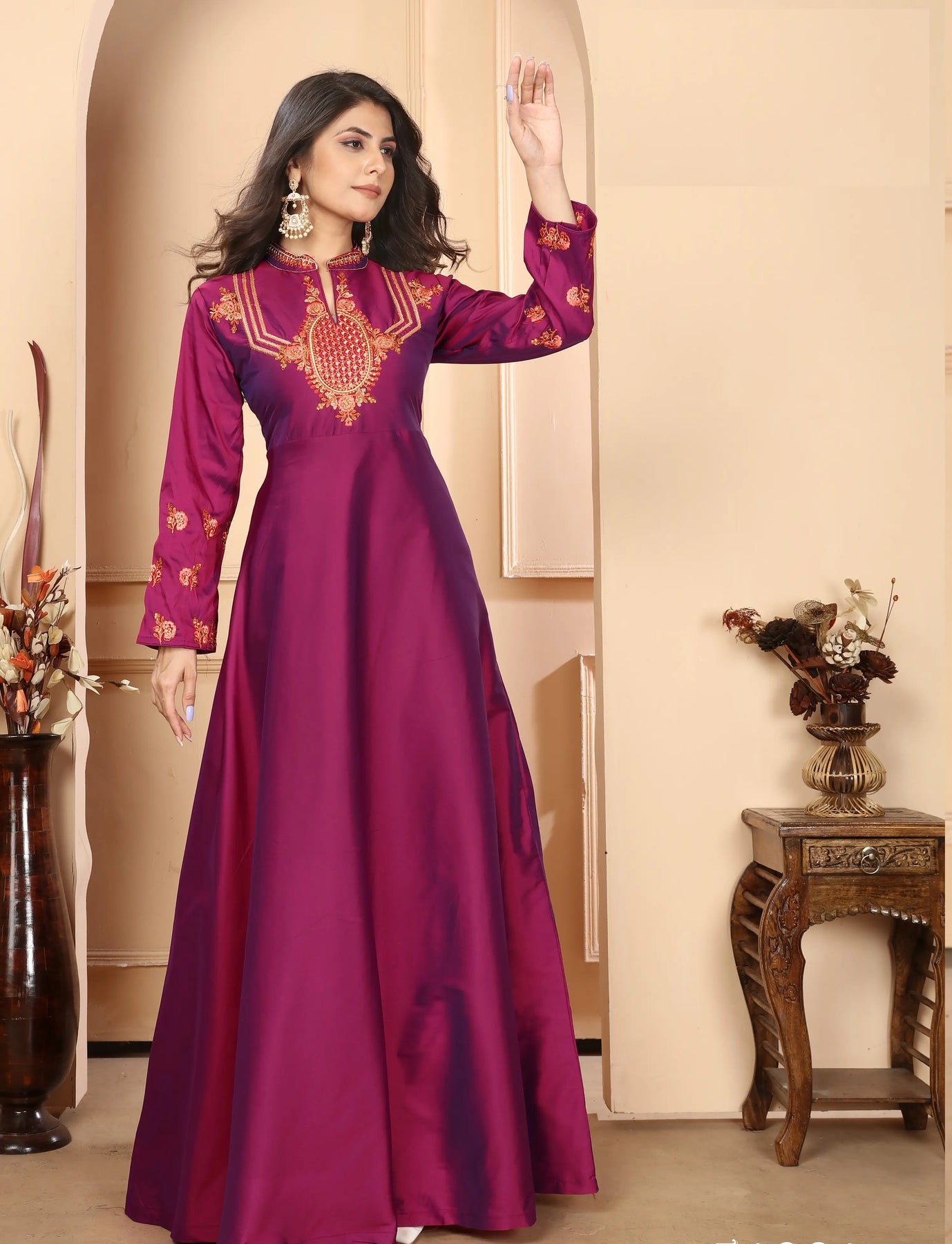 Style our Dark Pink Gown with intricately embroidered work at weddings, receptions, and other grand occasions for a look that’s nothing short of stunning.
