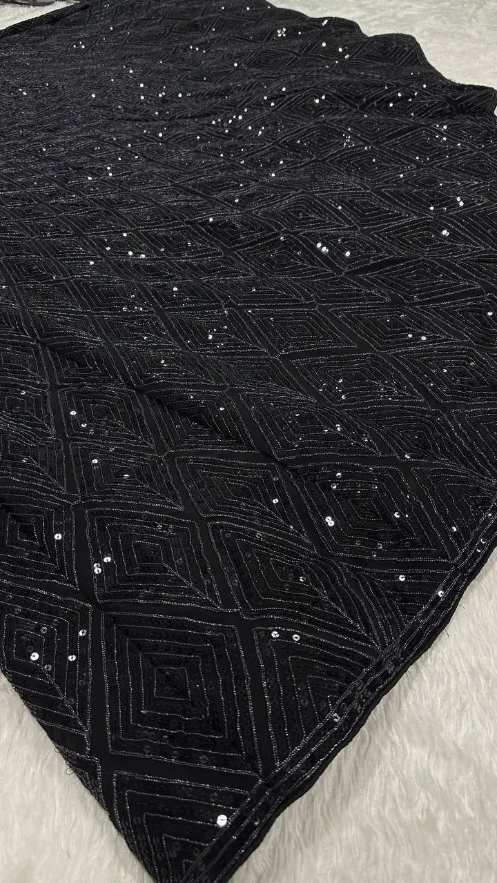 Black Georgette Sequence & Dori Work Lehenga Choli | Ready To Wear - qivii