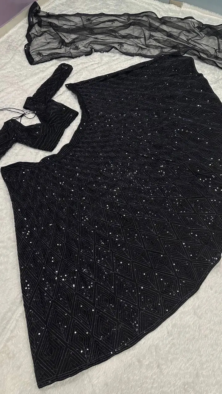 Black Georgette Sequence & Dori Work Lehenga Choli | Ready To Wear