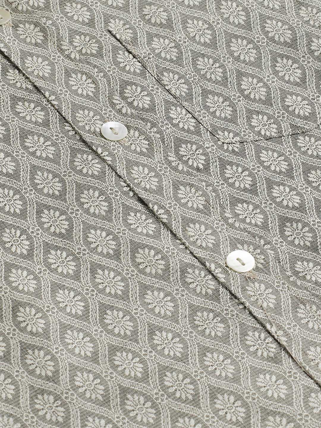 Beige regular-fit jacquard shirt, has a mandarin collar, a full button placket, long sleeves, Straight hemline.