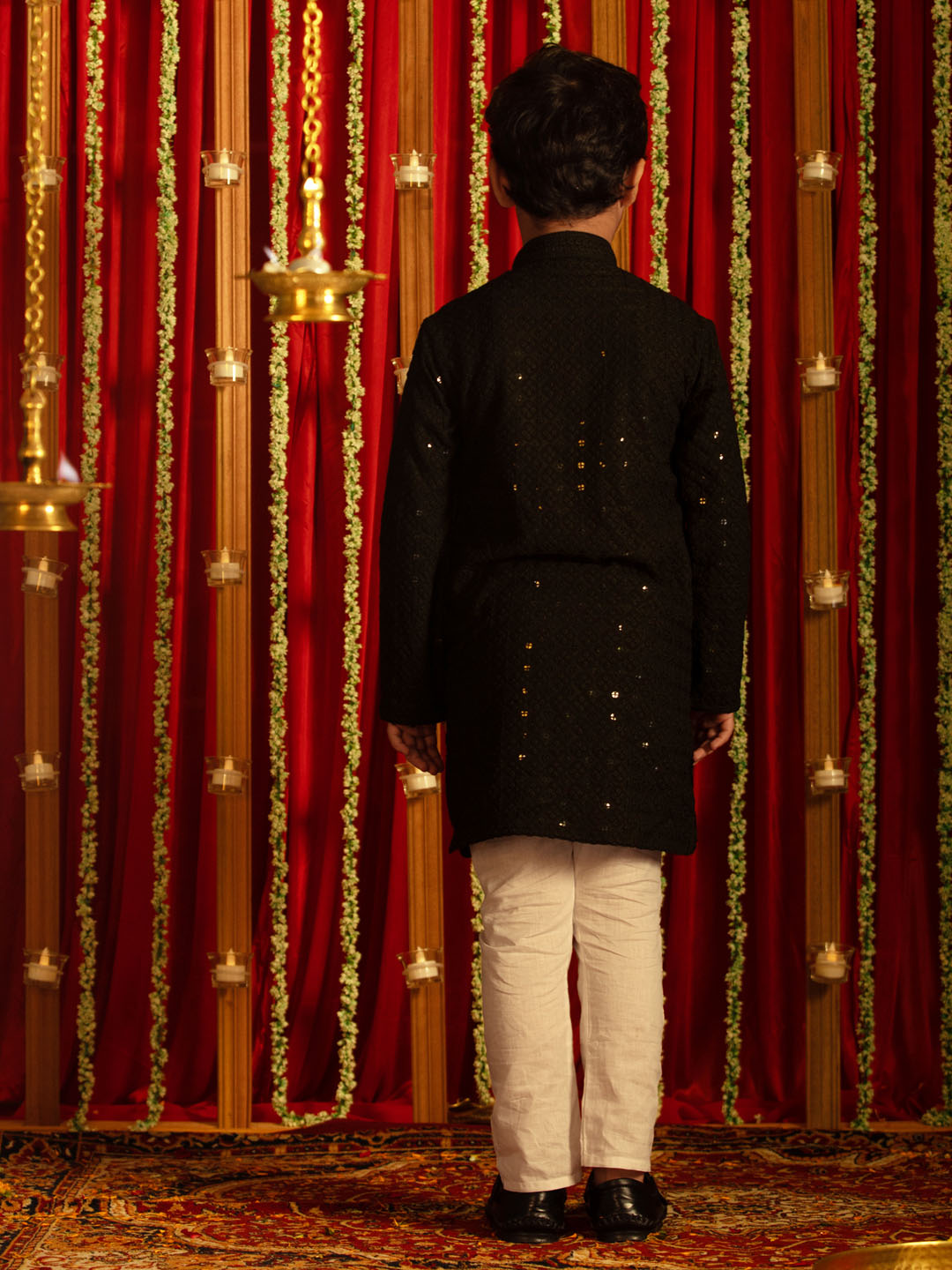 VASTRAMAY Boys' Black And White Schiffli Kurta Pyjama Set