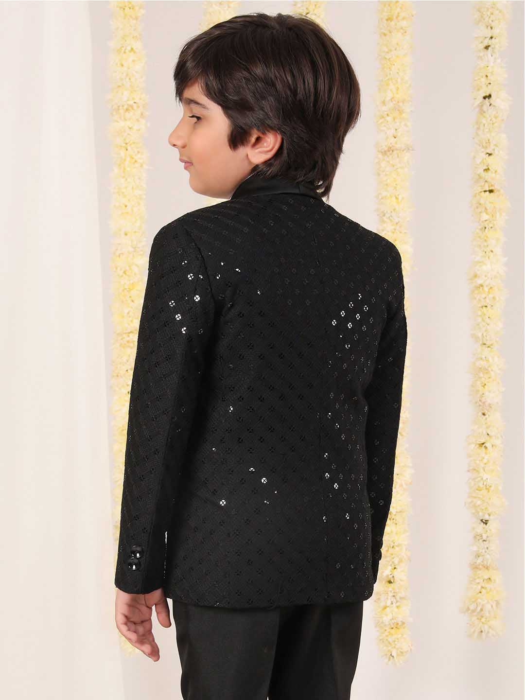 Black schiflli Blazer, has shawl lapel collar, full sleeves, button closure, slim fit and a classy look.