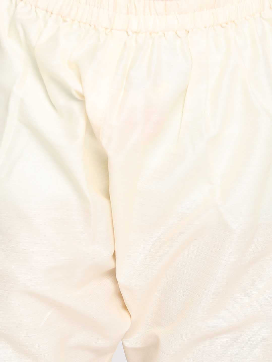 Blue Lehariya printed and embroidred silk Straight knee length kurta, has a mandarin collar, button placket, crochet lace on collar and placket, long sleeves, straight hem and side slits. Comes with cream solid pyjama, has elasticated waistband.