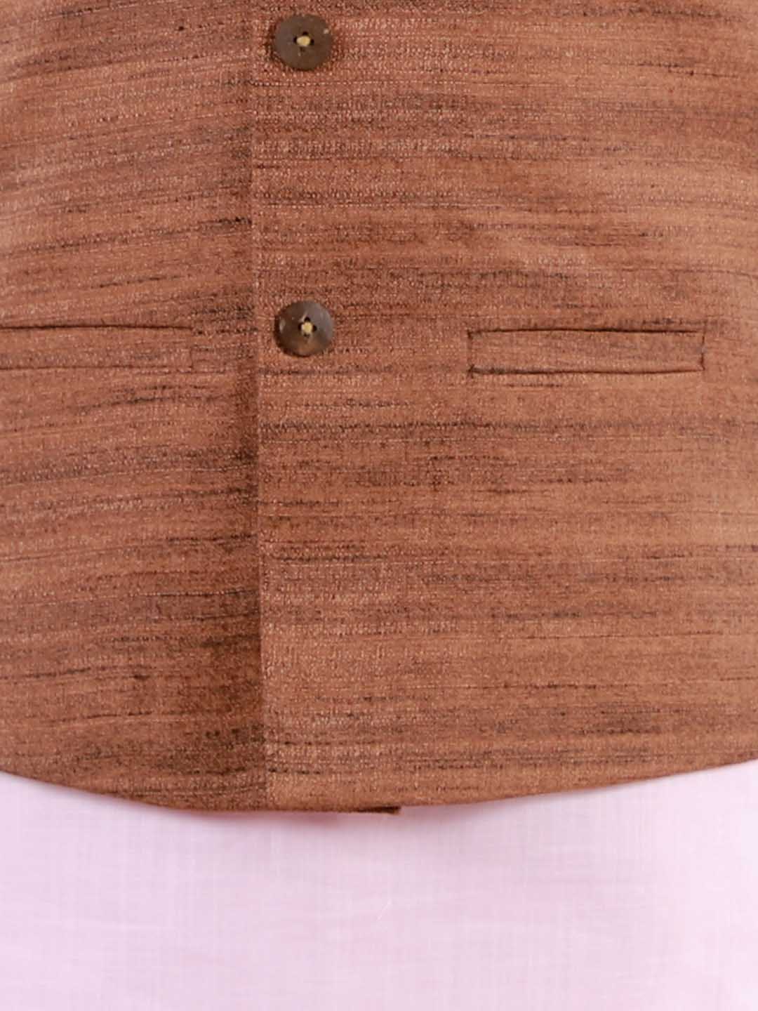 VASTRAMAY Boys Coffee Brown Matka Silk Blend Nehru Jacket