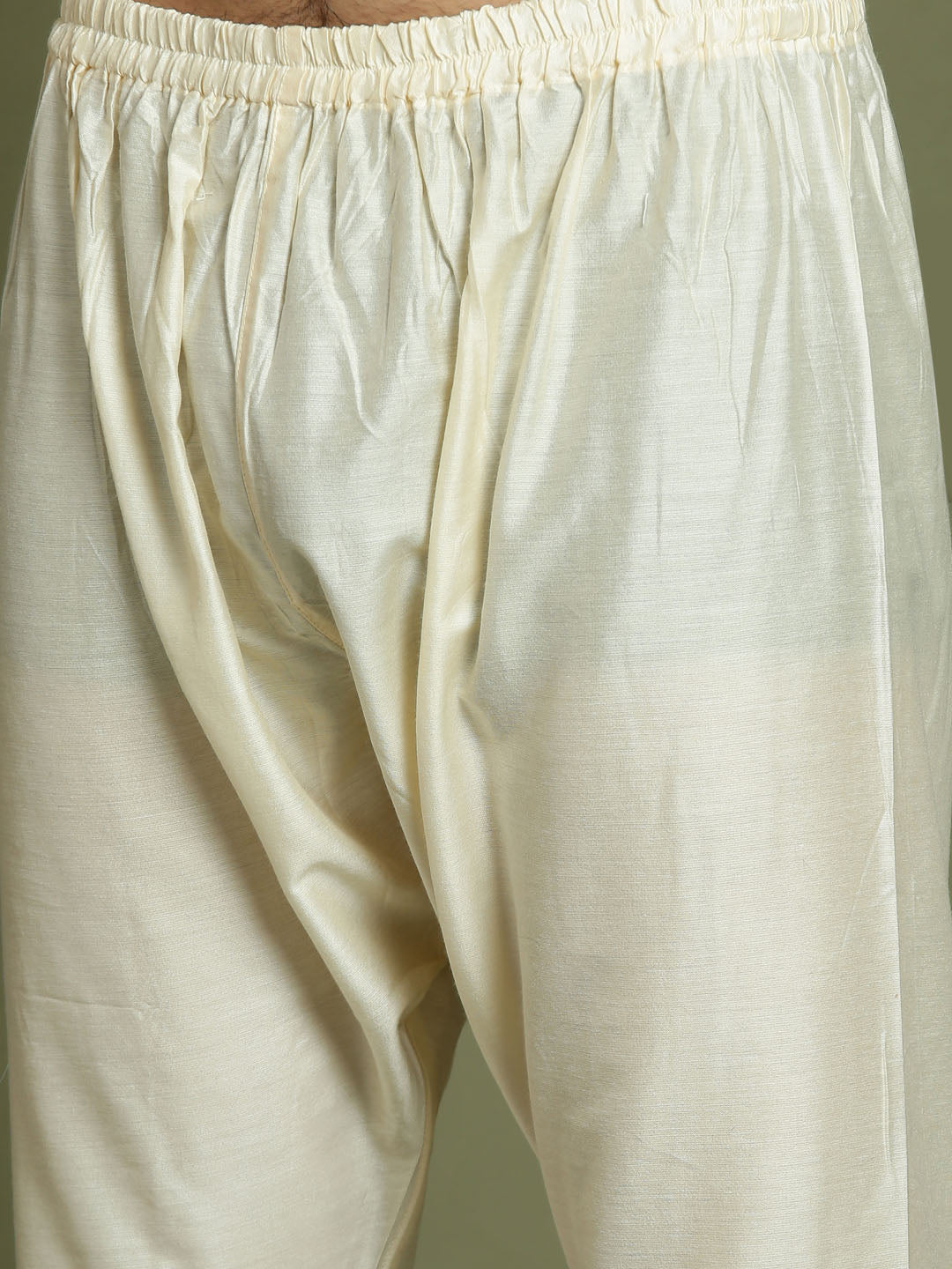 Cream color mirror work Nehru jacket with cream color solid kurta and solid pyjama set.