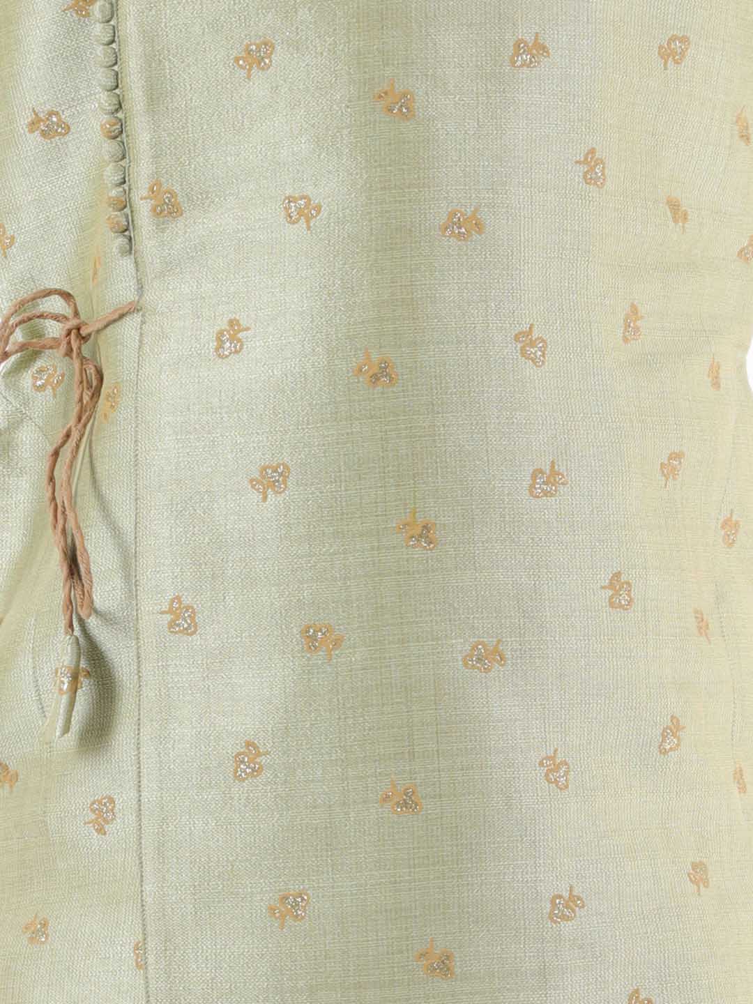 VASTRAMAY Boys' Green Angrakha Woven Kurta With Rosegold Dhoti Pant Set