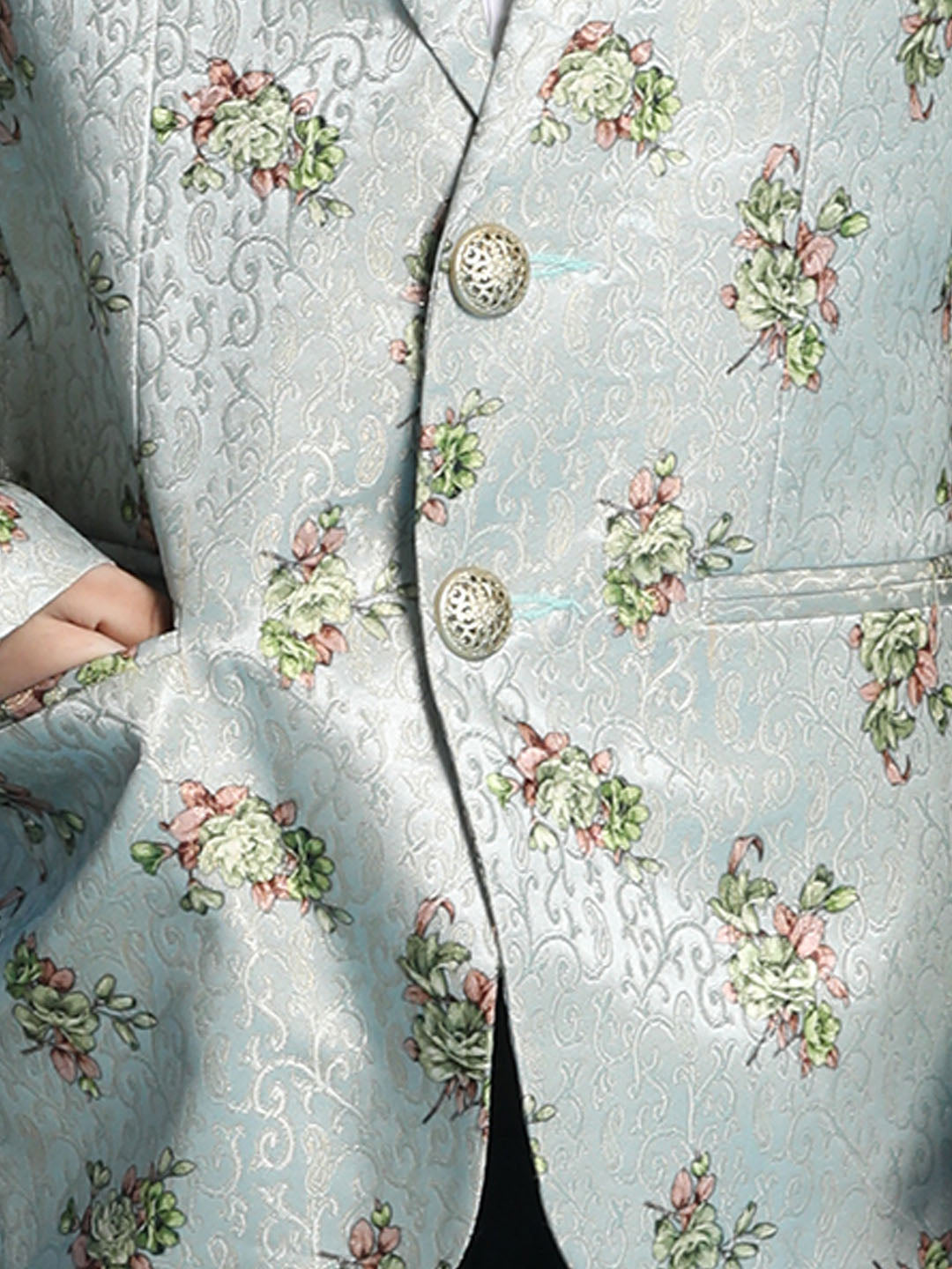 VASTRAMAY Boy's Light Green Woven Silk Blend Blazer