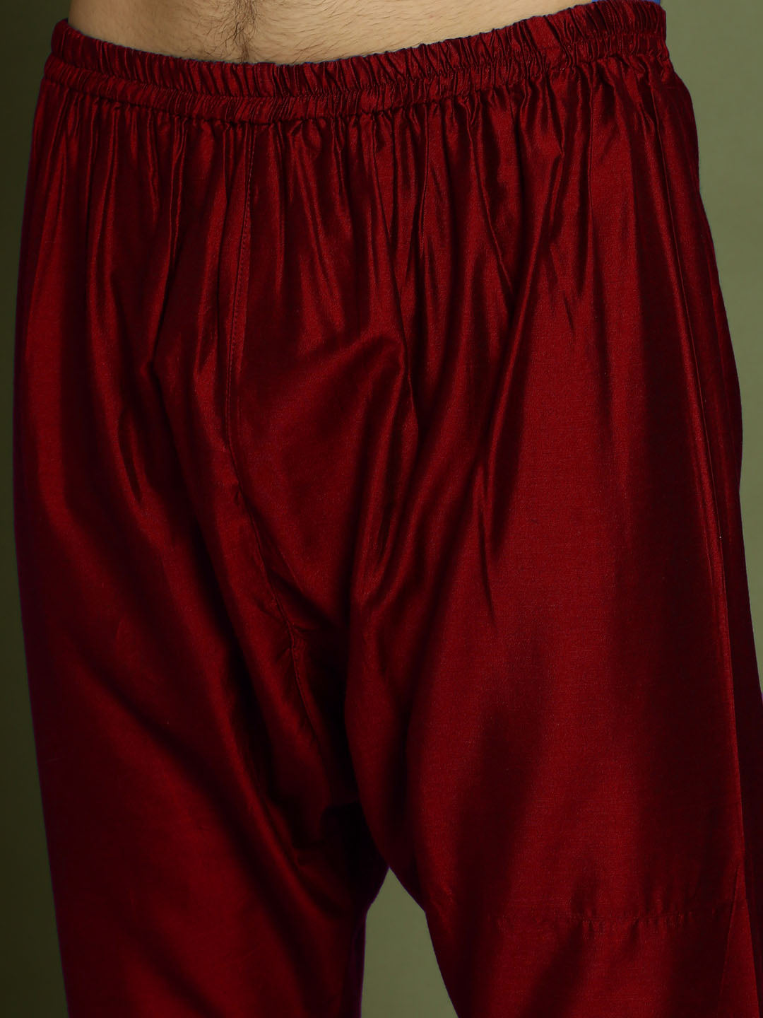 VASTRAMAY Boys maroon Embroidered Vertical Mirror Work Kurta With Pyjama Set