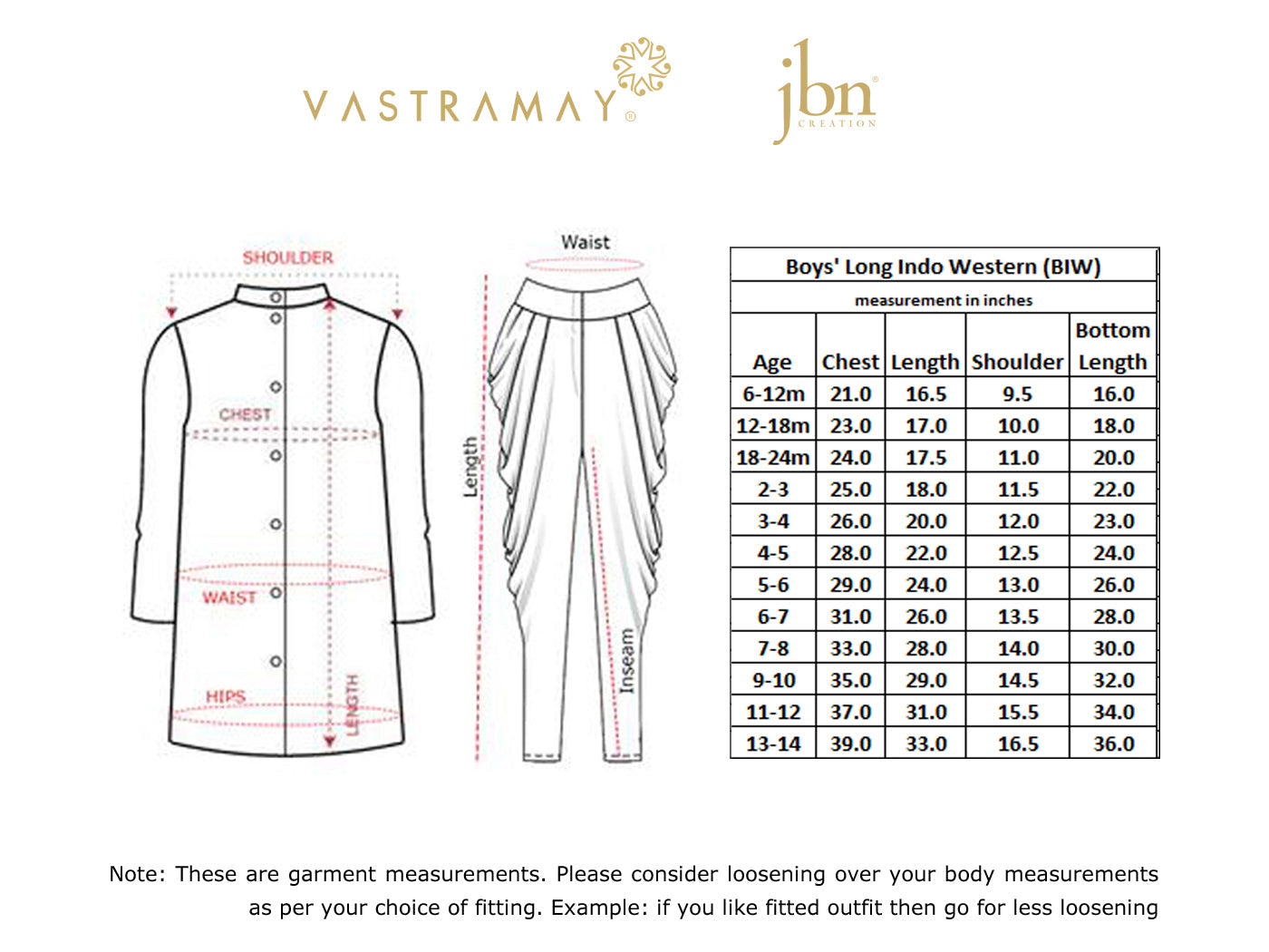 This sherwani set from Vastramay is a must have in your little boys ethnic collection wardrobe. Team is with a pair of mojaris for a cute ethnic look.