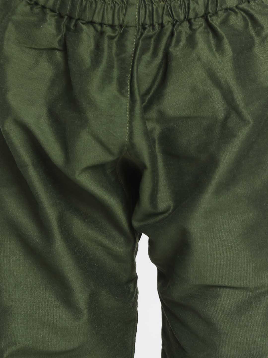 Vastramay Boy's Mehandi Green Cotton Blend Kurta Pyjama Set - qivii