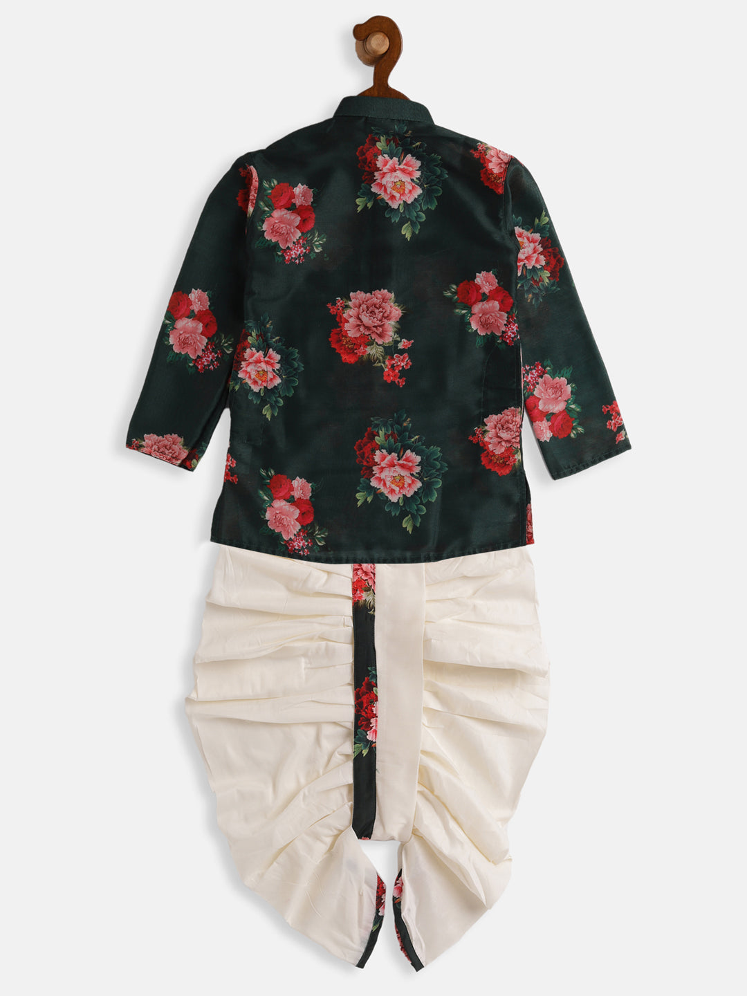 Green and cream-coloured printed kurta with dhoti pants