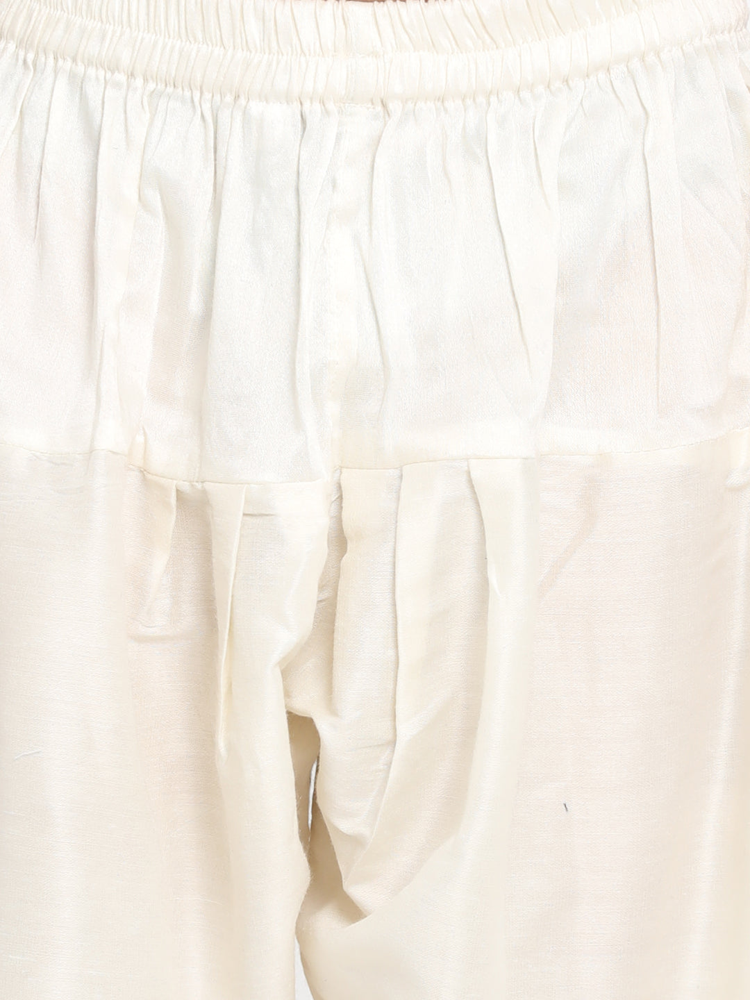 A pair of cream solid patiala pants, has an elasticated waistband with slip-on closure