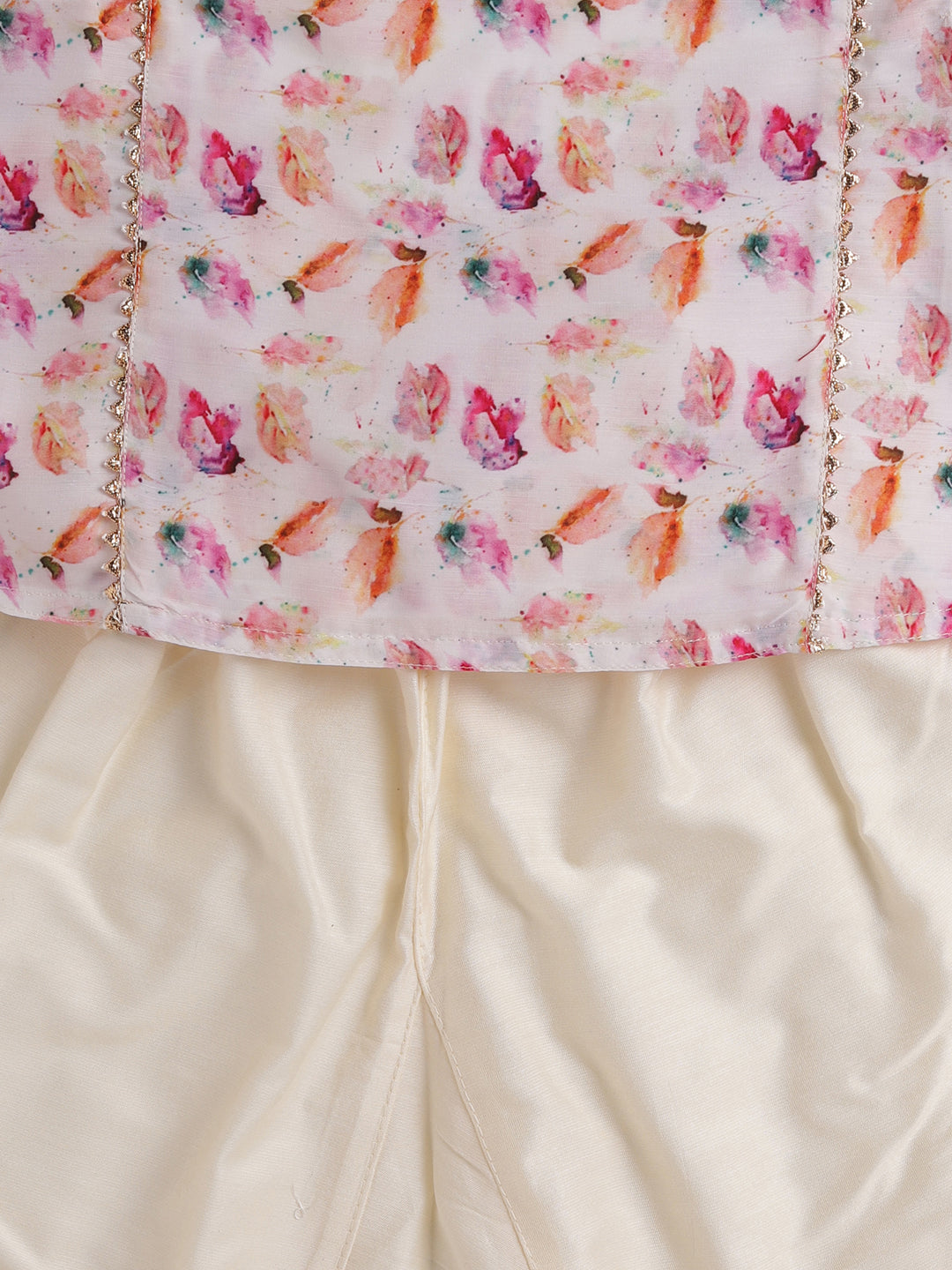 VASTRAMAY Boys Multicolor-Base-White Cotton Blend Kurta Pyjama Set