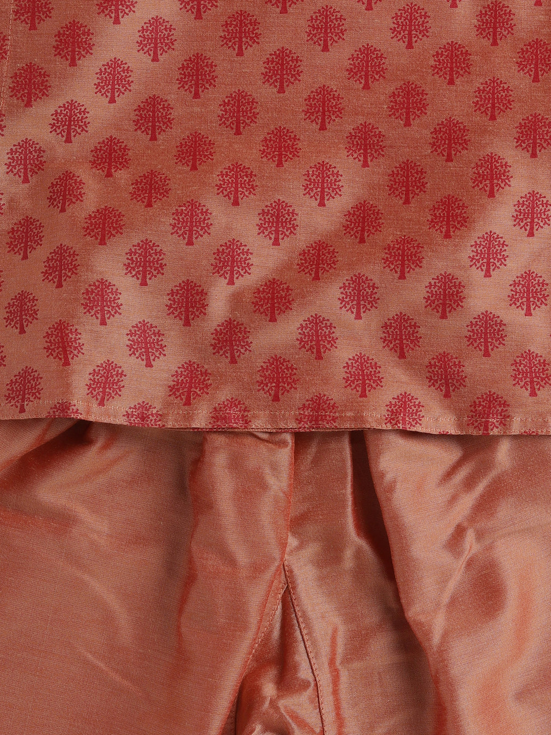 VASTRAMAY Boys Pink Cotton Blend Kurta Pyjama Set