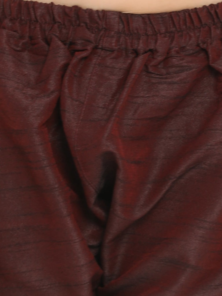 Maroon textured pyjama, has elasticated waistband, slip-on closure