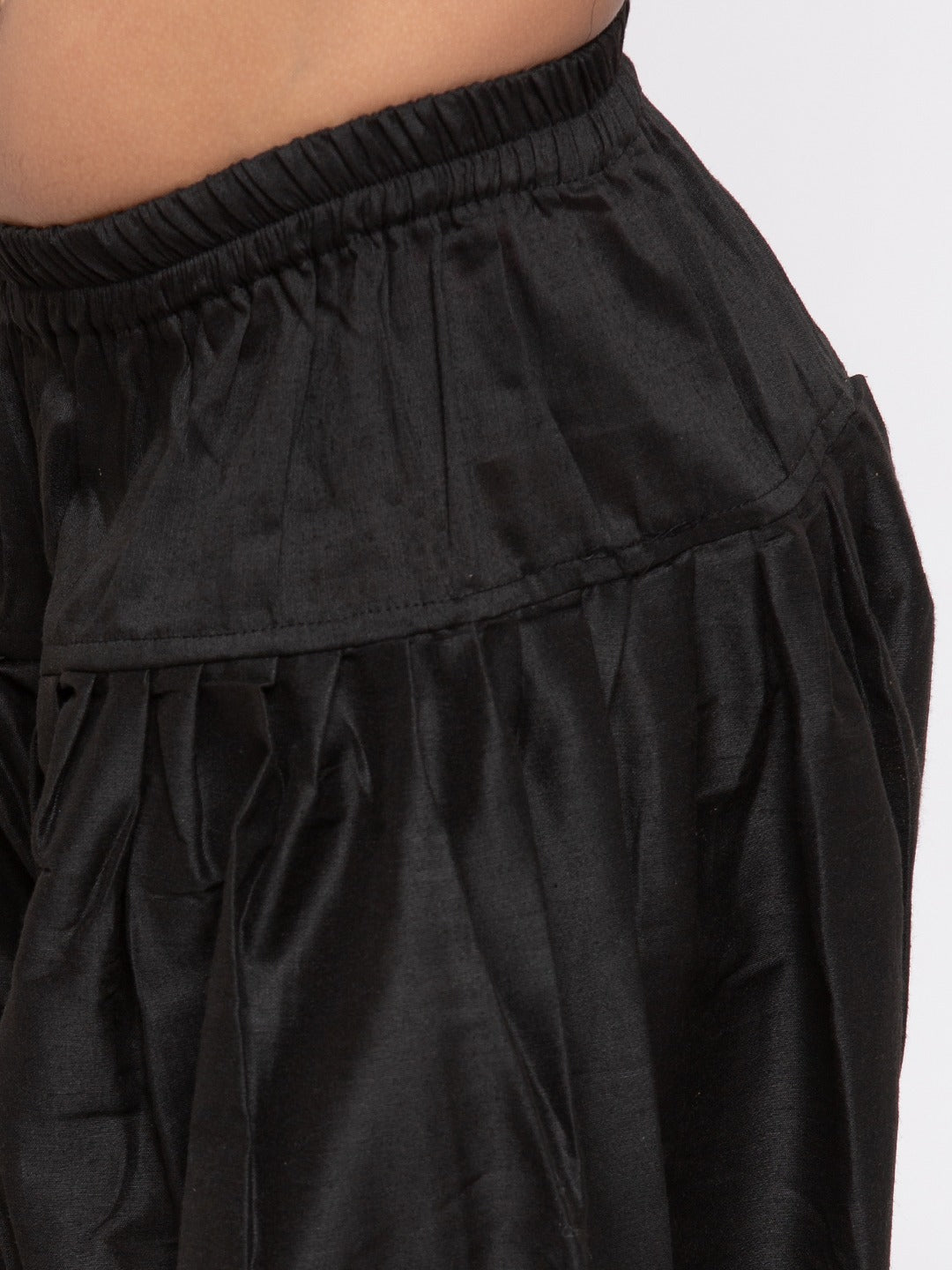 Black solid slim-fit patiala with gathers and pleats, has an elasticated waistband with a slip-on fastening