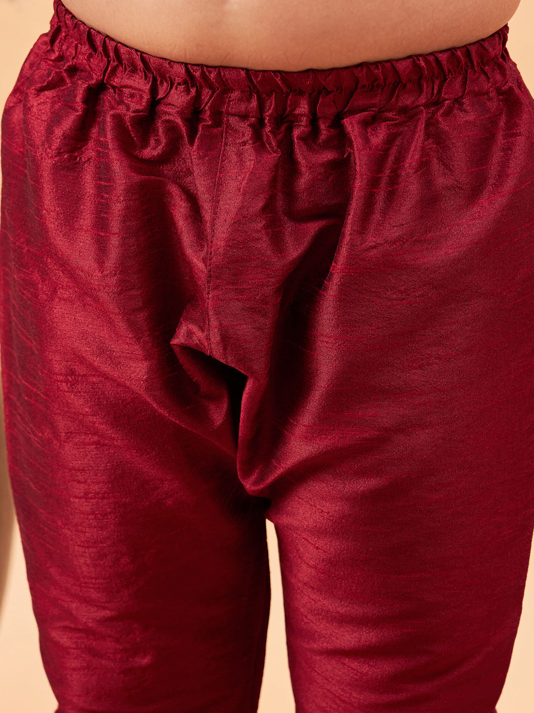 Maroon color solid pajama, has elasticated waistband, slip-on closure.