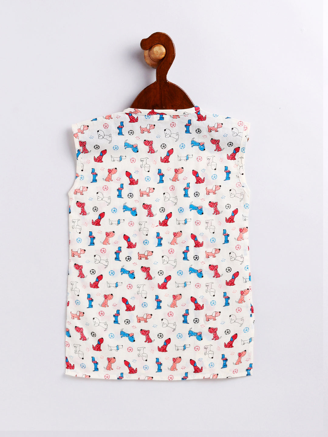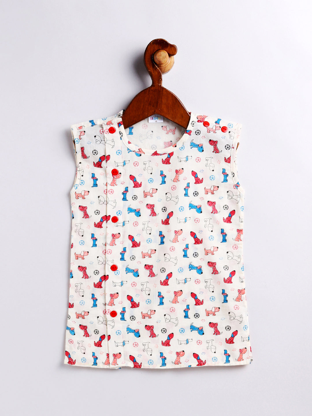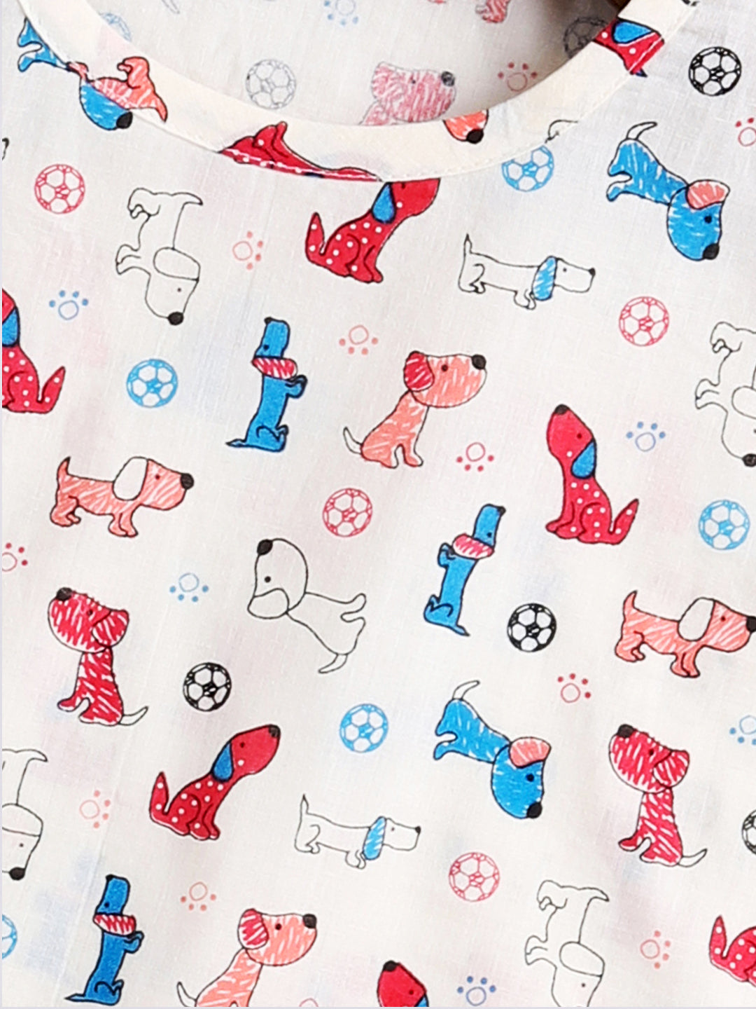 Cotton allover printed kurta with round neck, knee length and has full sleeve.Comes with a cotton pyjama with elasticated wasitband.