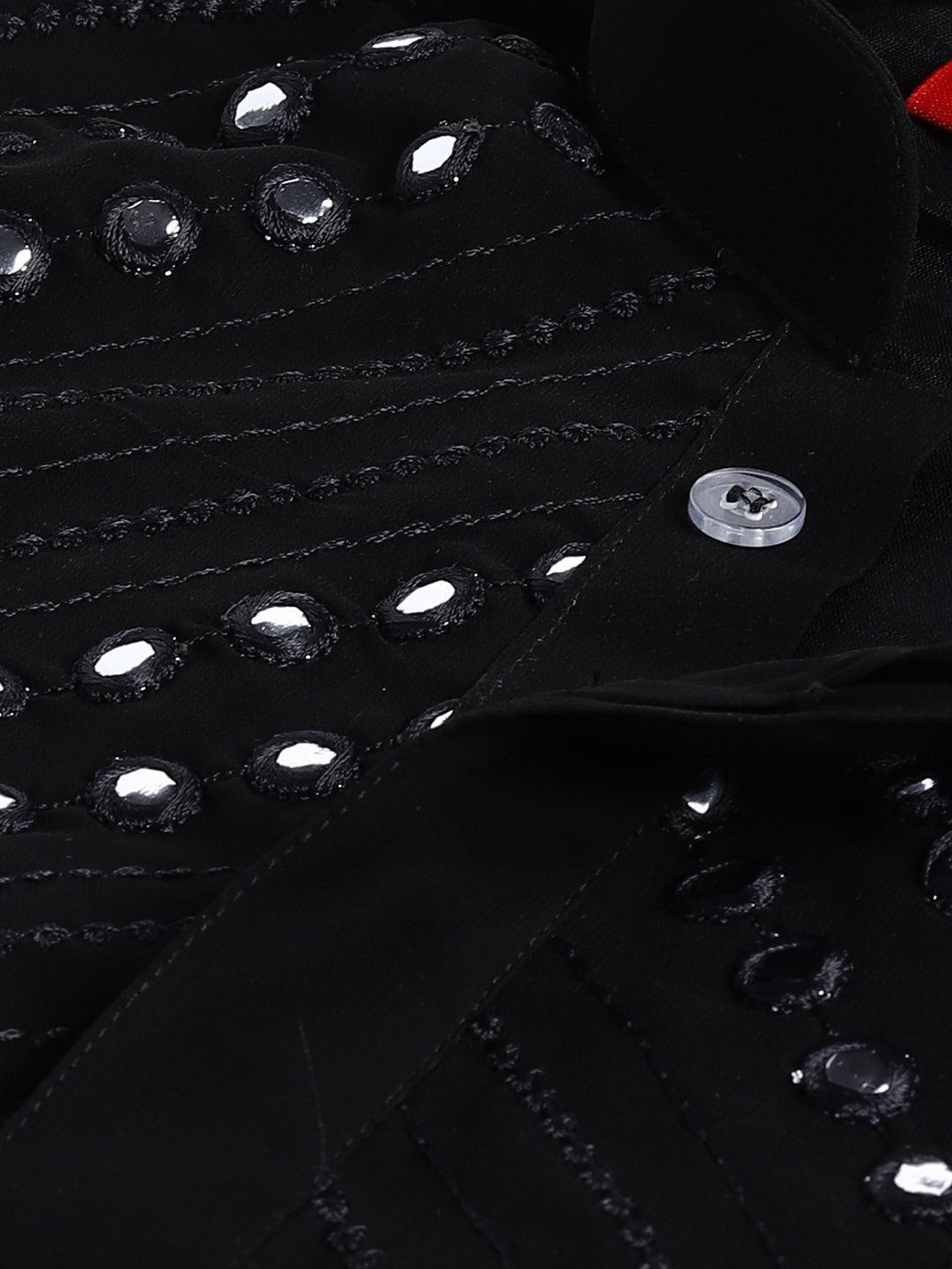 VASTRAMAY SISHU Boys' Black Mirror Work Kurta Pyjama Set