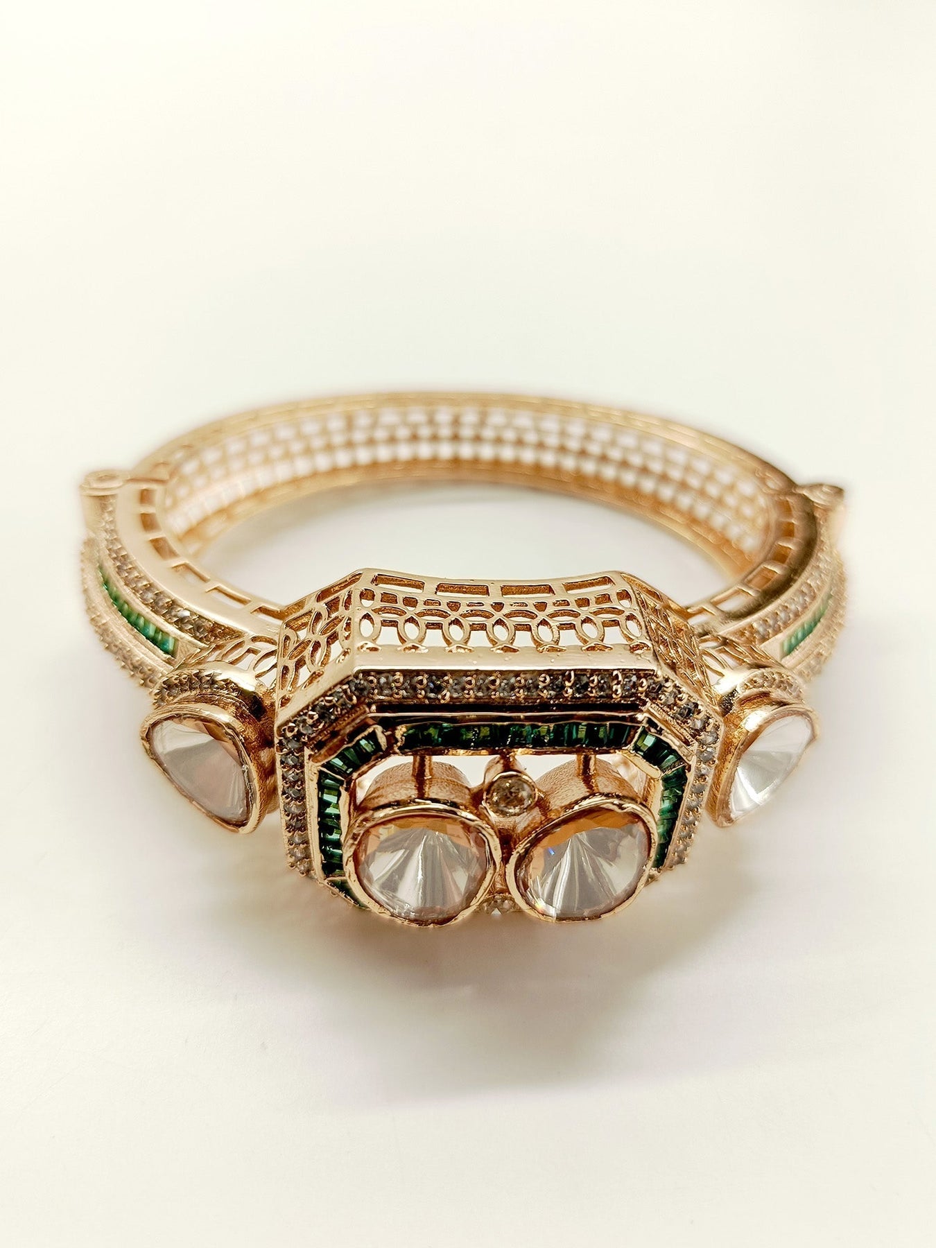 This Openable Boutique Kada Is Perfect For Any Occasion. Made Of Premium Gold Plating American Diamond Setting, It Is Durable And Visually Stunning. The Intricate Detailing And Craftsmanship Of These Pieces Make A Beautiful Addition To Any Jewelry Collection.