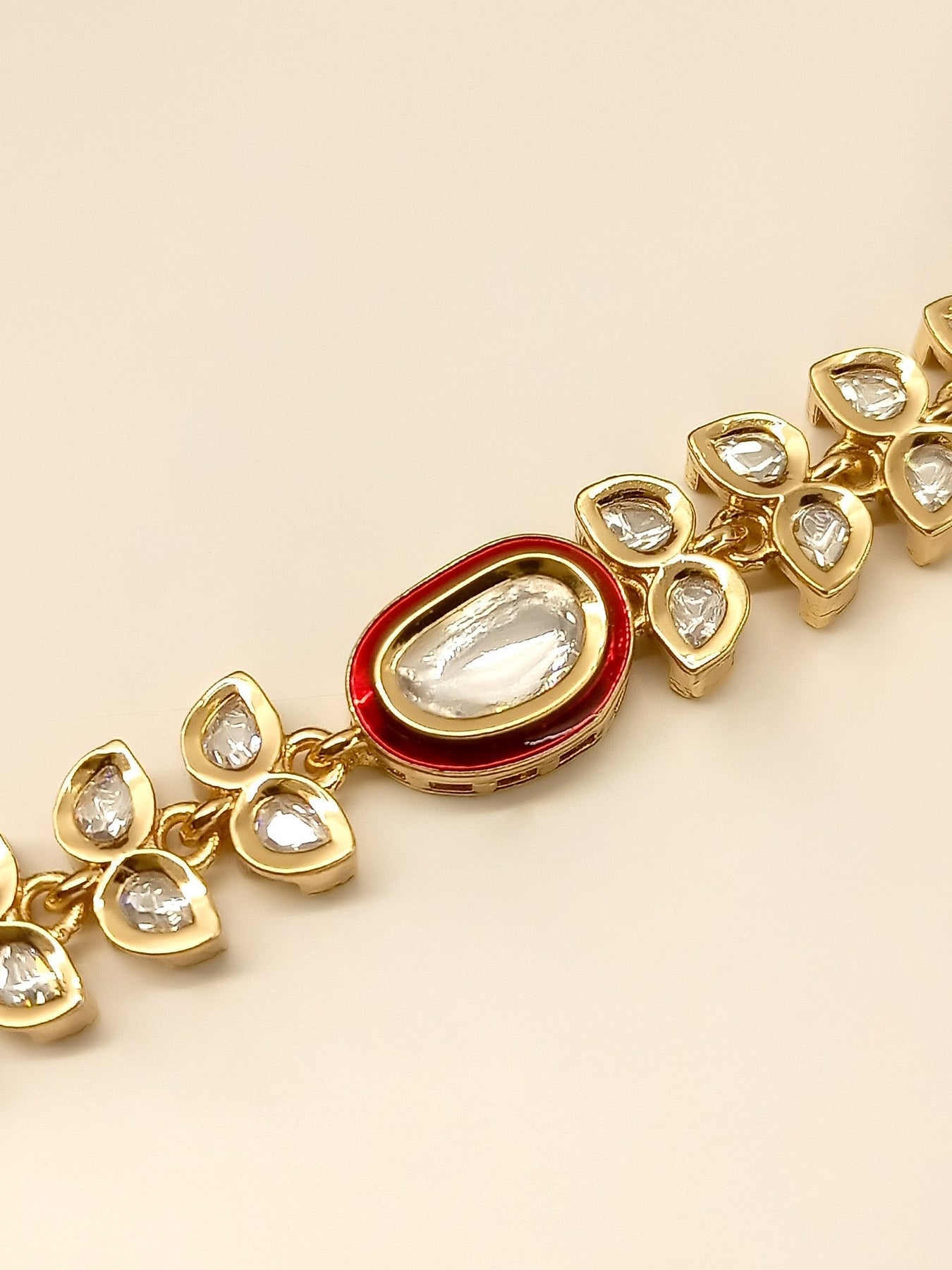 This Adjustable Kundan Bracelet Is Crafted Of A Delicate Kundan Stone, Set On A Gold Plated Brass Metal. The Bracelet Is Elegant And Timeless, A Luxurious Accessory For Any Special Event.