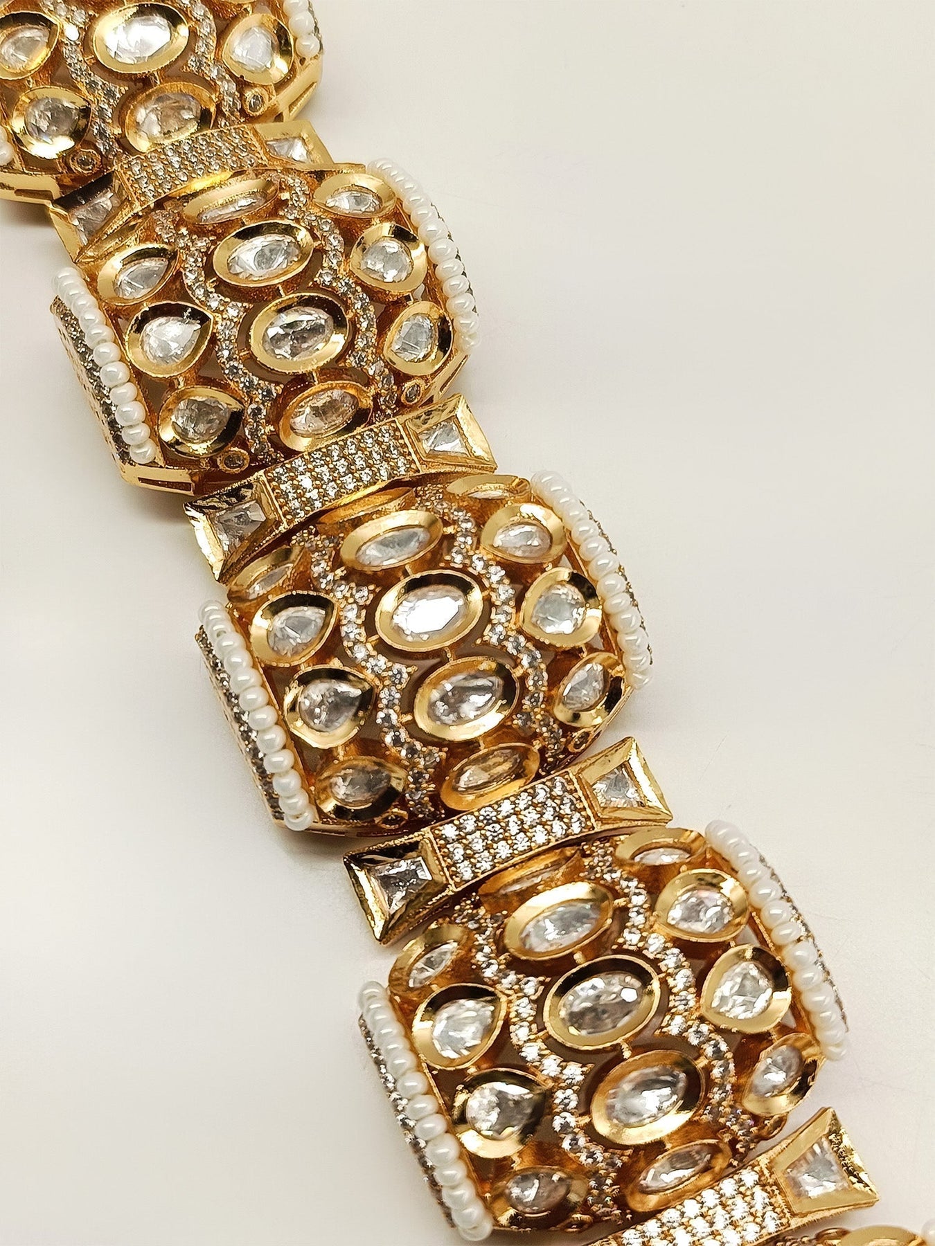 Elevate Your Look With This Exquisite Kundan Bracelet. Crafted From Gold Plated Brass, They Feature A Traditional Design Enhanced By Sparkling Kundan Stones. Add A Touch Of Elegance To Your Wardrobe.