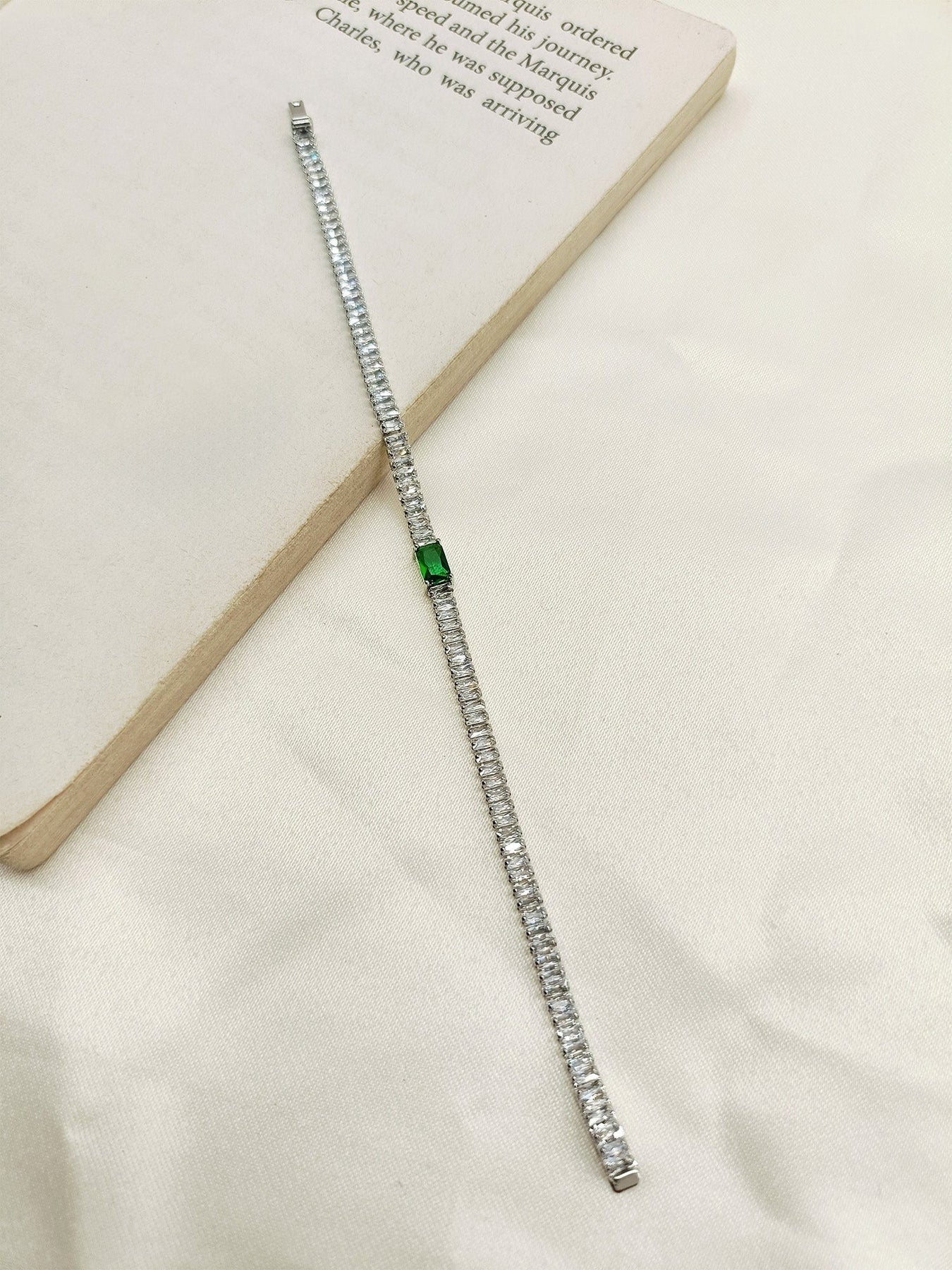 This American Diamond Bracelet Is Crafted Of A Delicate American Diamond, Set On A Silver Plated Brass Metal. The Bracelet Is Elegant And Timeless, A Luxurious Accessory For Any Special Event.
