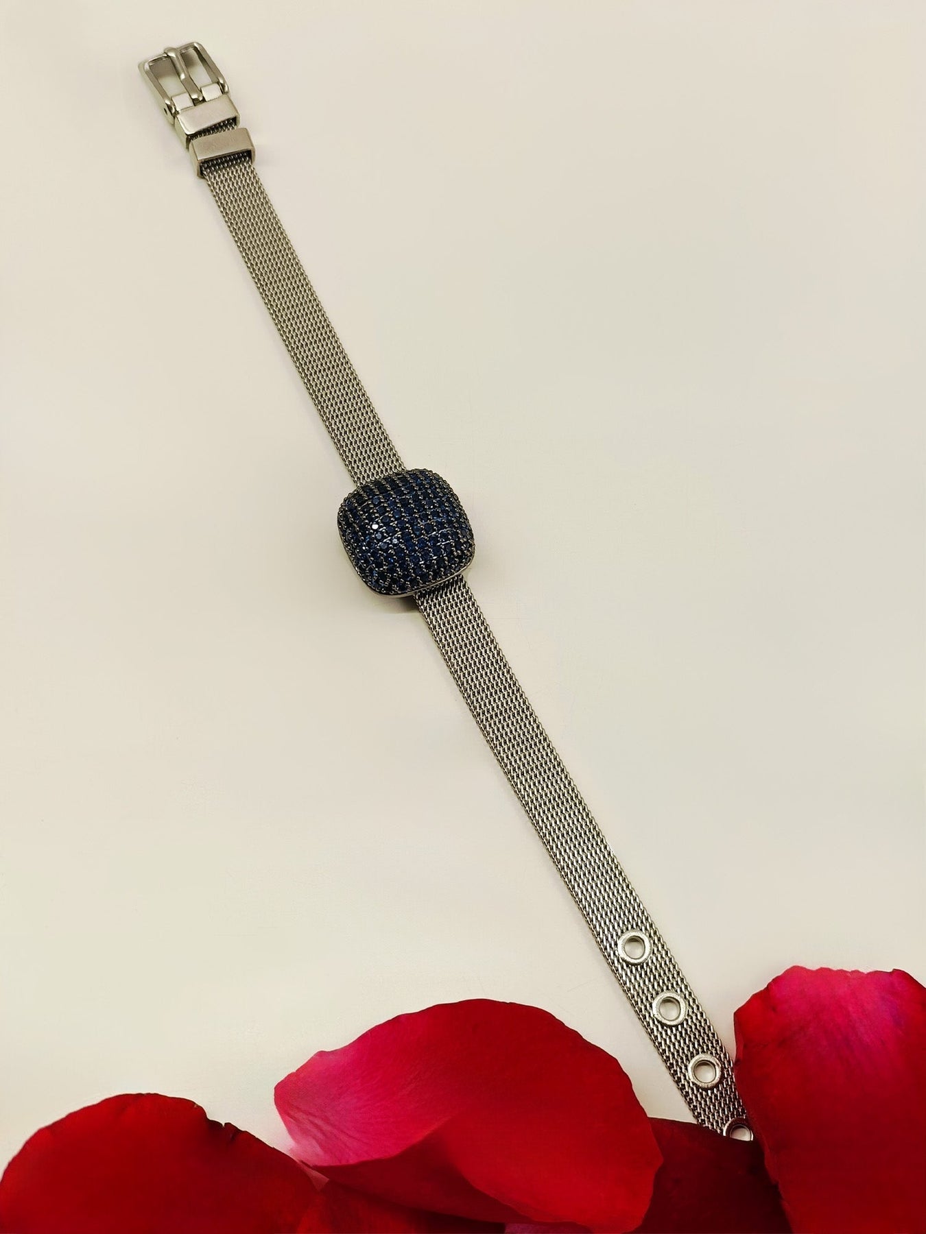 Vish Blue Sapphire Square Shape Victorian Bracelet