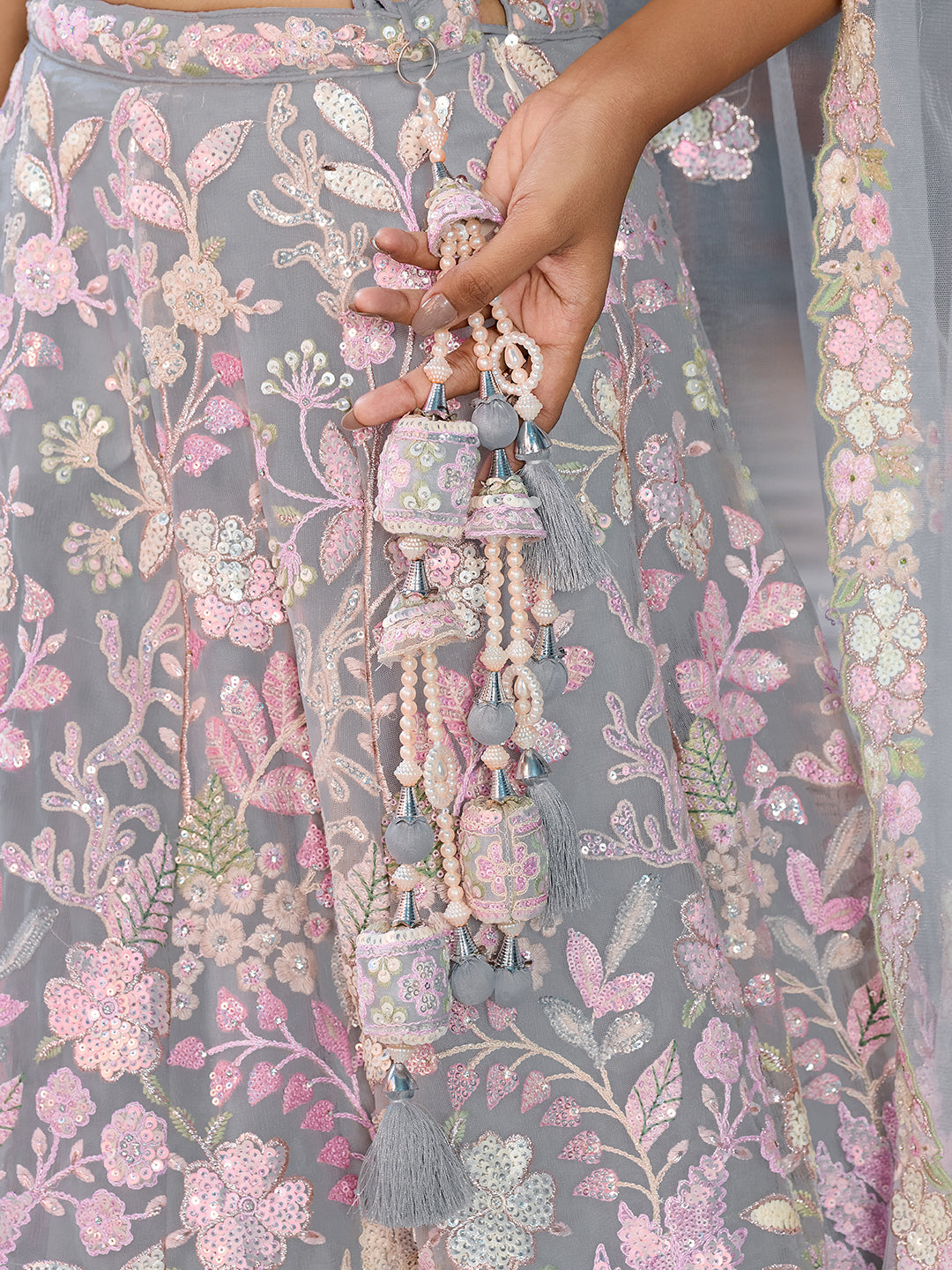 GREY - Net Fabric Sequins embroidery Semi-Stitched Lehenga & Unstitched Blouse With Dupatta