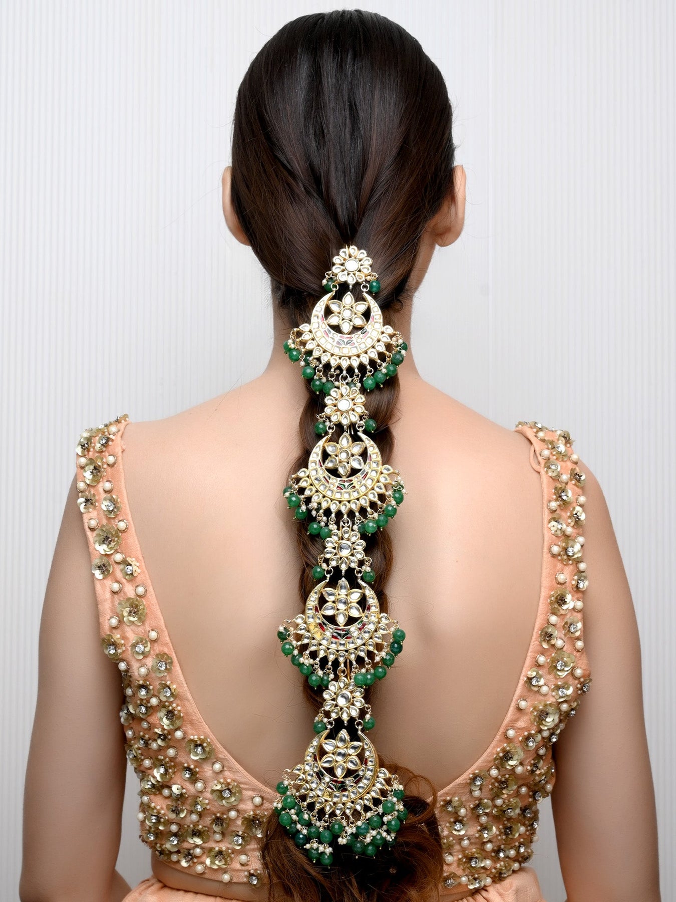 Enhance Your Bridal Look With Our Braid Accessories In Kundan. Made With Gold Plated Brass Metal And Adorned With Elegant Beads, This Is The Perfect Finishing Touch For Any Bride-to-be. Elevate Your Style With Our Beautifully Designed Braid Accessories And Make Your Big Day Even More Special.