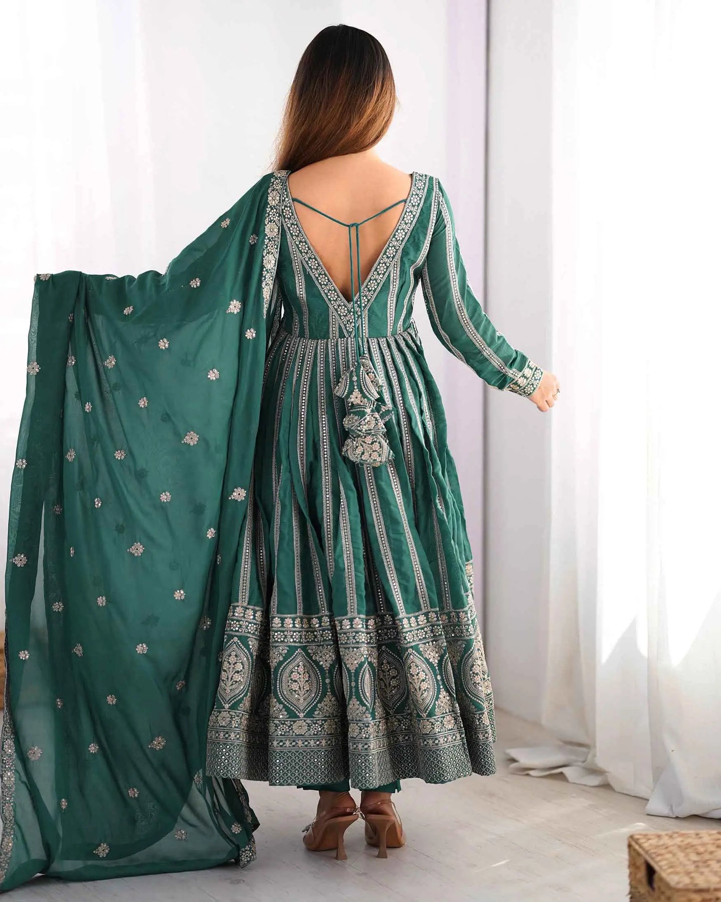 Greenish Blue Georgette Sequins Embroidery Work Gown And Dupatta - qivii