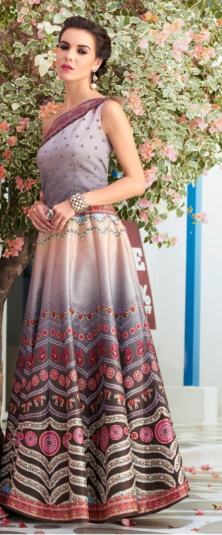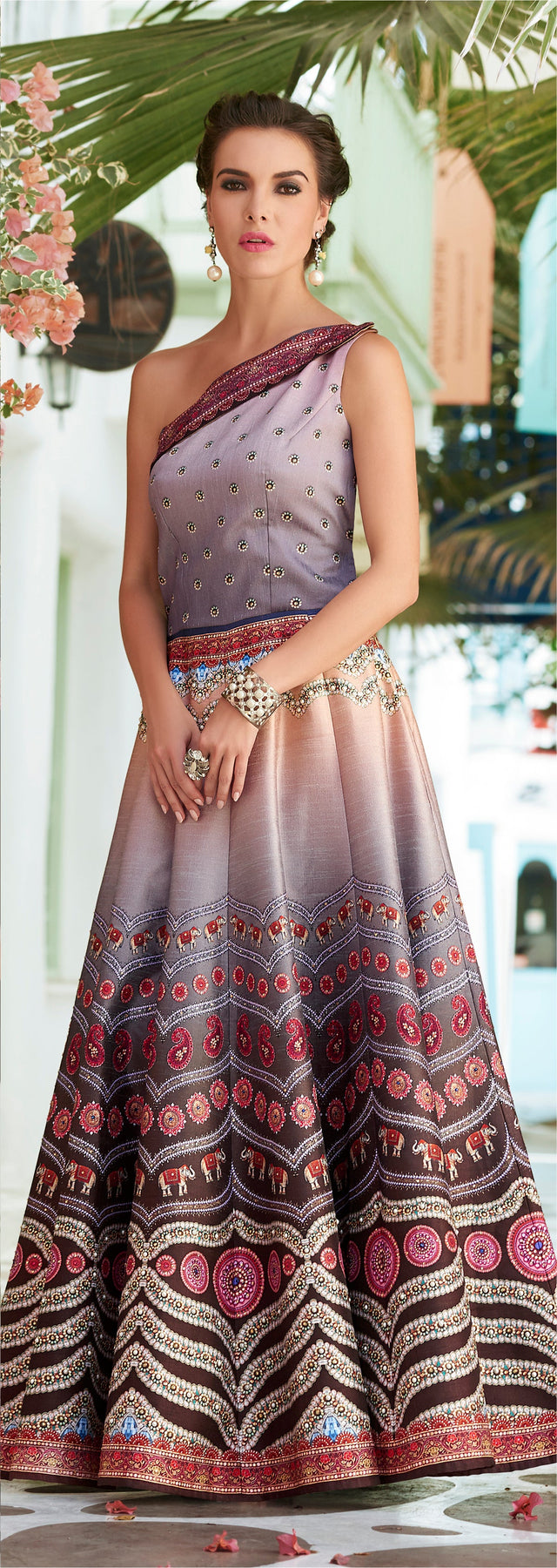 The overall effect of the khadi mono silk fabric and heavy embroidery is one of understated elegance and sophistication. The gown is perfect for formal occasions like weddings, galas, and other special events where a touch of glamour is desired. It is designed to make the wearer feel confident, beautiful, and effortlessly chic, while also showcasing their unique sense of style and personality.