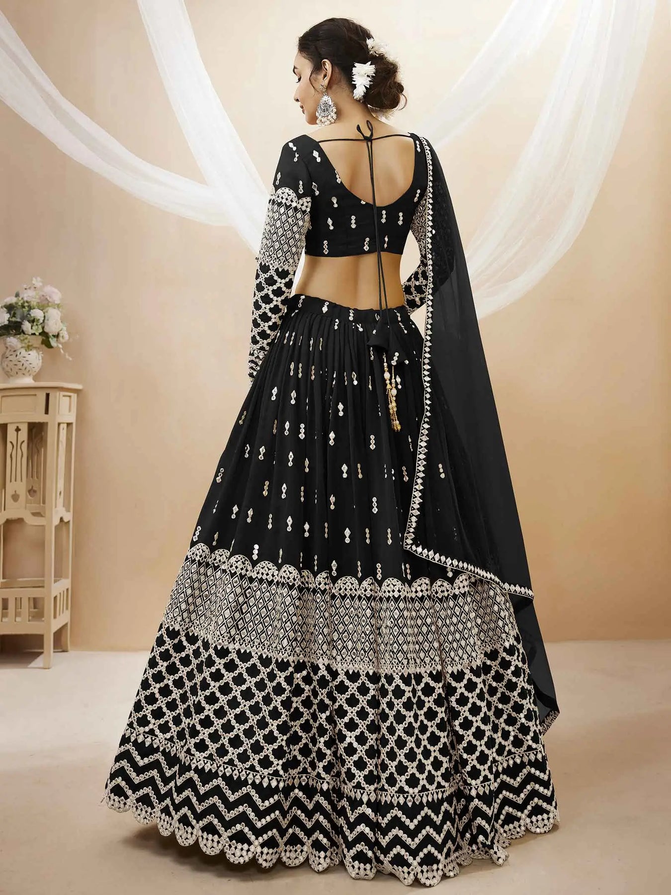 Beauty In Black Georgette Lehenga choli With Sequence And Zari Embroidery Work With Soft Net dupatta | Ready To Wear