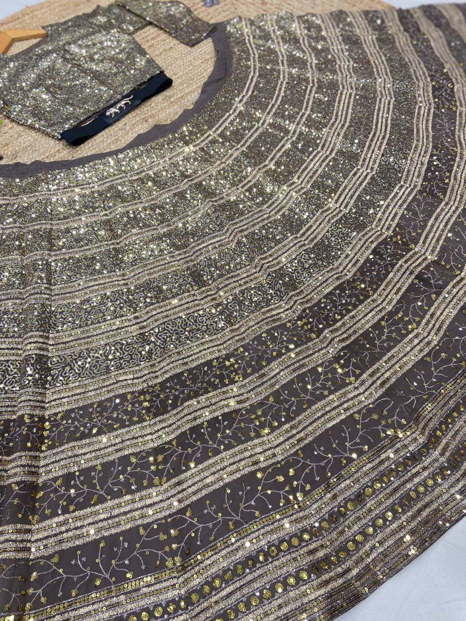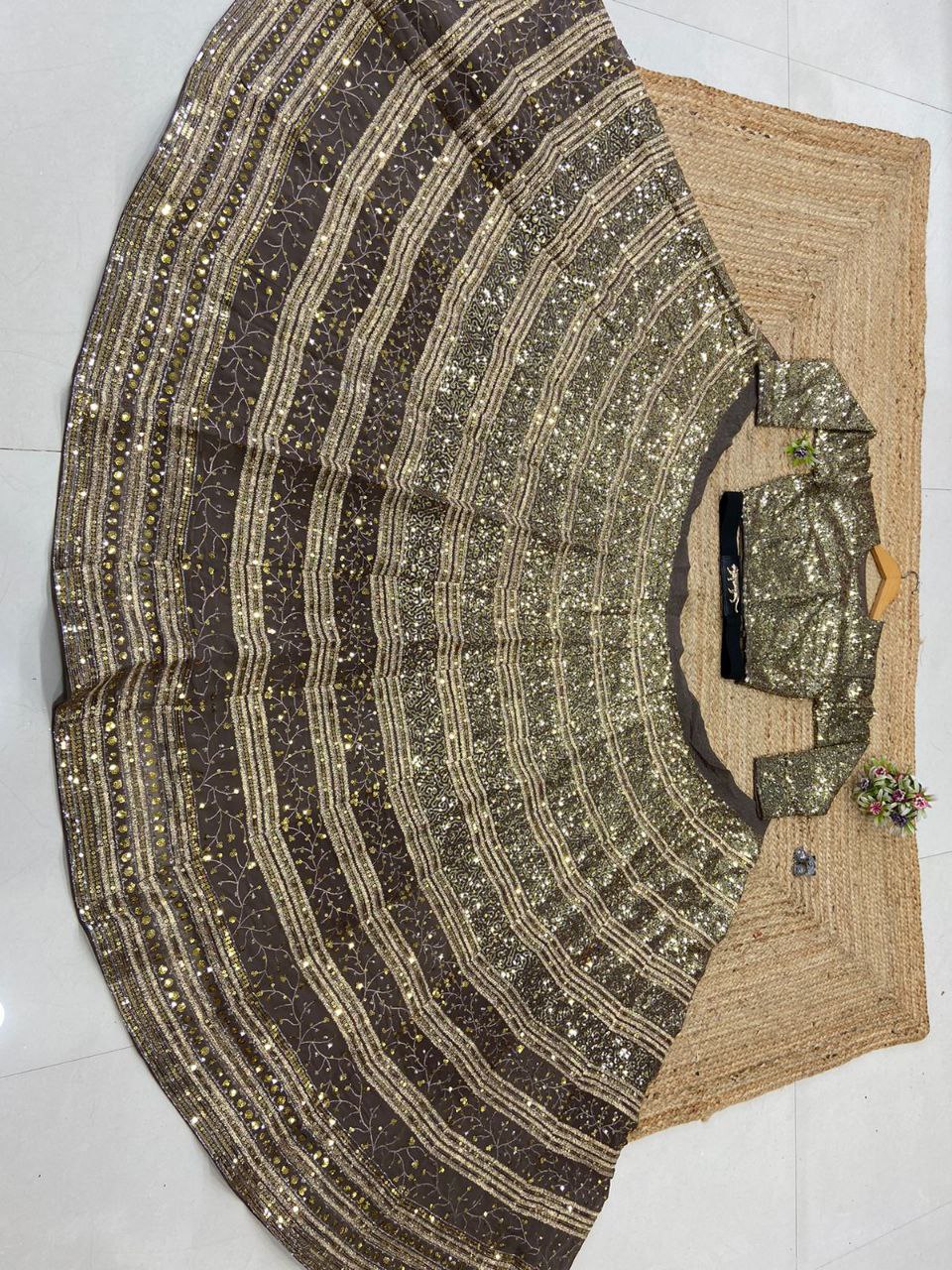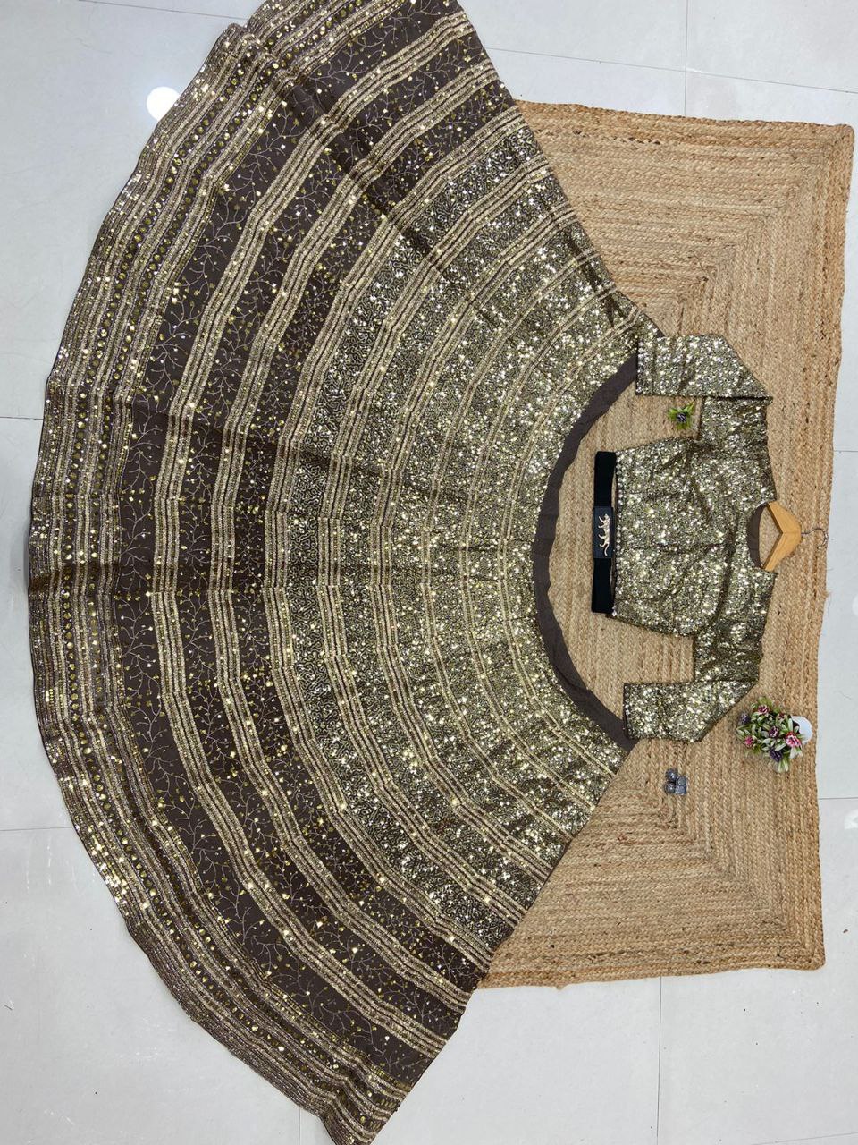 Brown Premium Faux Georgette Embellished With Beautiful Embroidery,Zari ,Coding And Beautiful Sequins Work | Ready To Wear