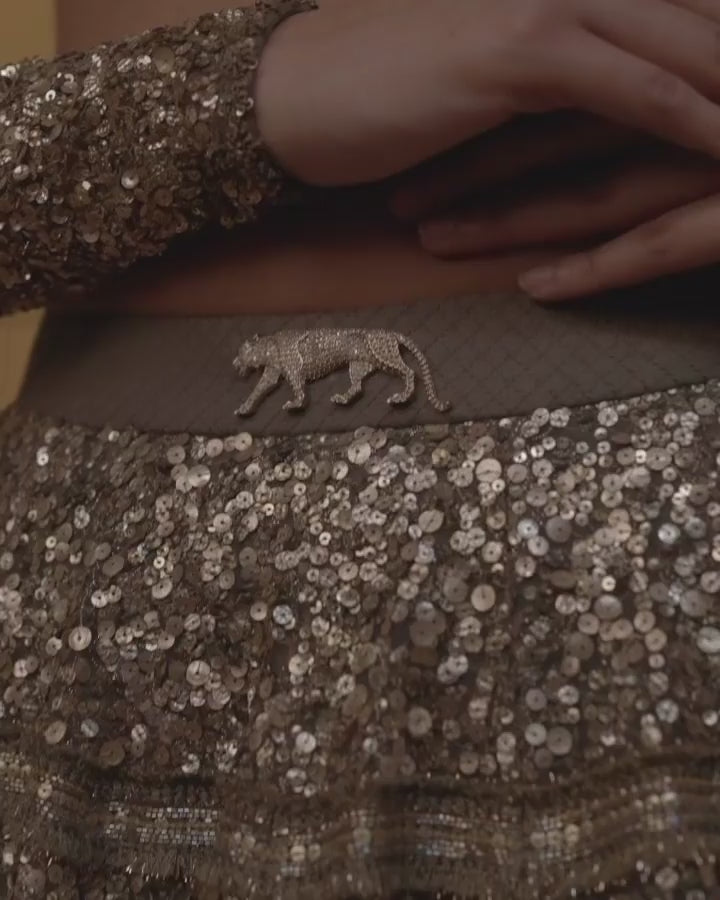 Blouse : *Premium Faux Georgette Embellished With Beautiful C Sequins Work All Over Full Fabric With Sleeves*( Unstitched )