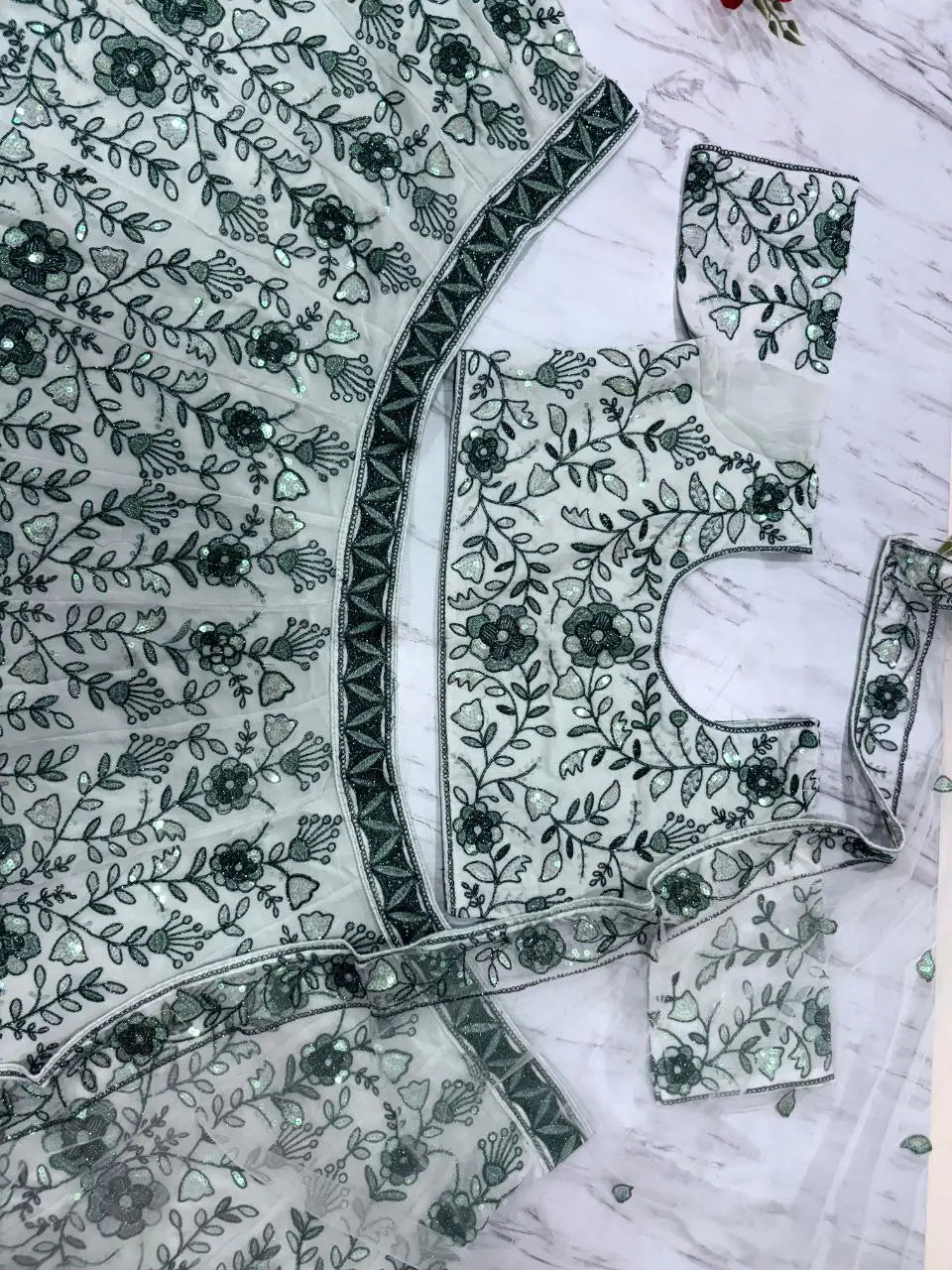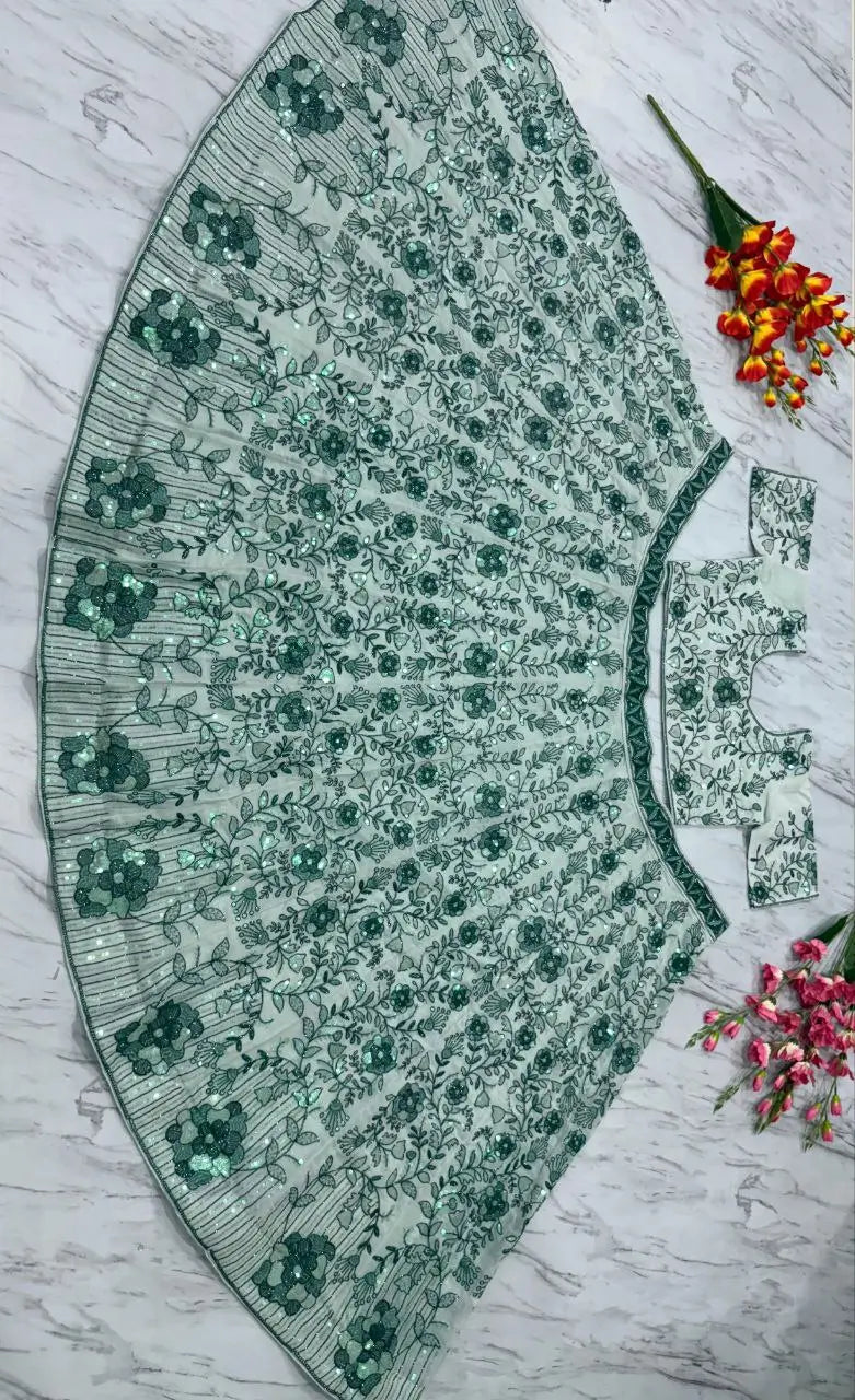 Grace your look with our latest lehenga collection, crafted from georgette and embellished with thread, dori and sequins embroidery. The intricately detailed blouse and dupatta completes the look, making it perfect for weddings and grand celebrations.