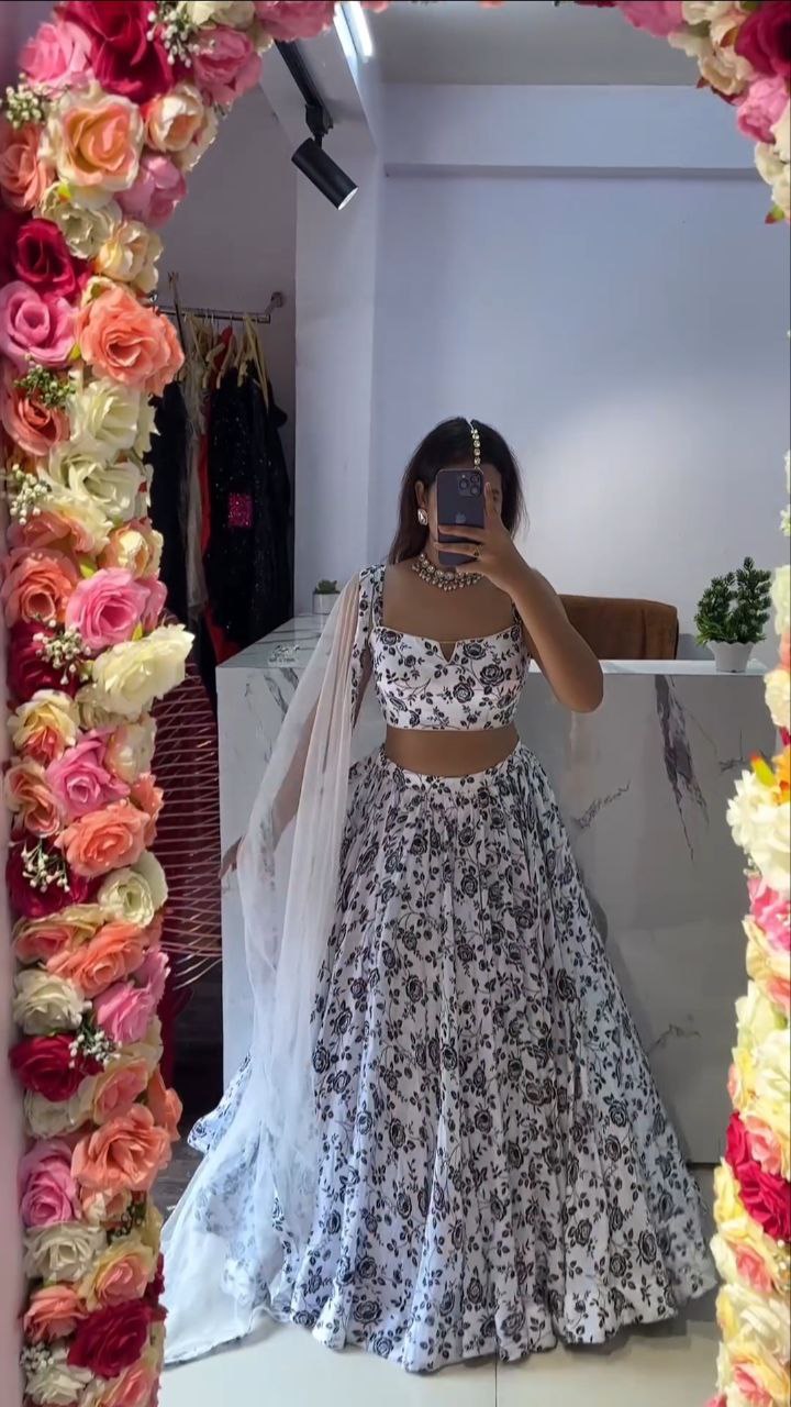 Lehenga : *Premium Chinon Silk Embellished With Beautiful Digital Print With Heavy Cancan And Canvas With Inner Covering With 4 Mtr Flair*( Semi Stitched )